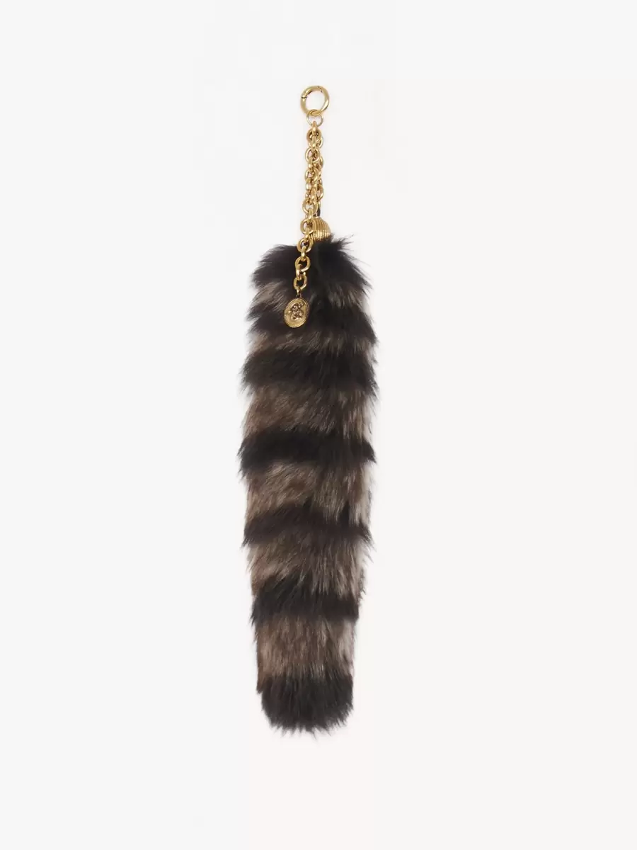 Orta boy iki renkli koyun postu kuyruğu, çift taraflı “C” madalyon ve altın pirinç zincirle birleştiren Treasure Tails tılsımı.
