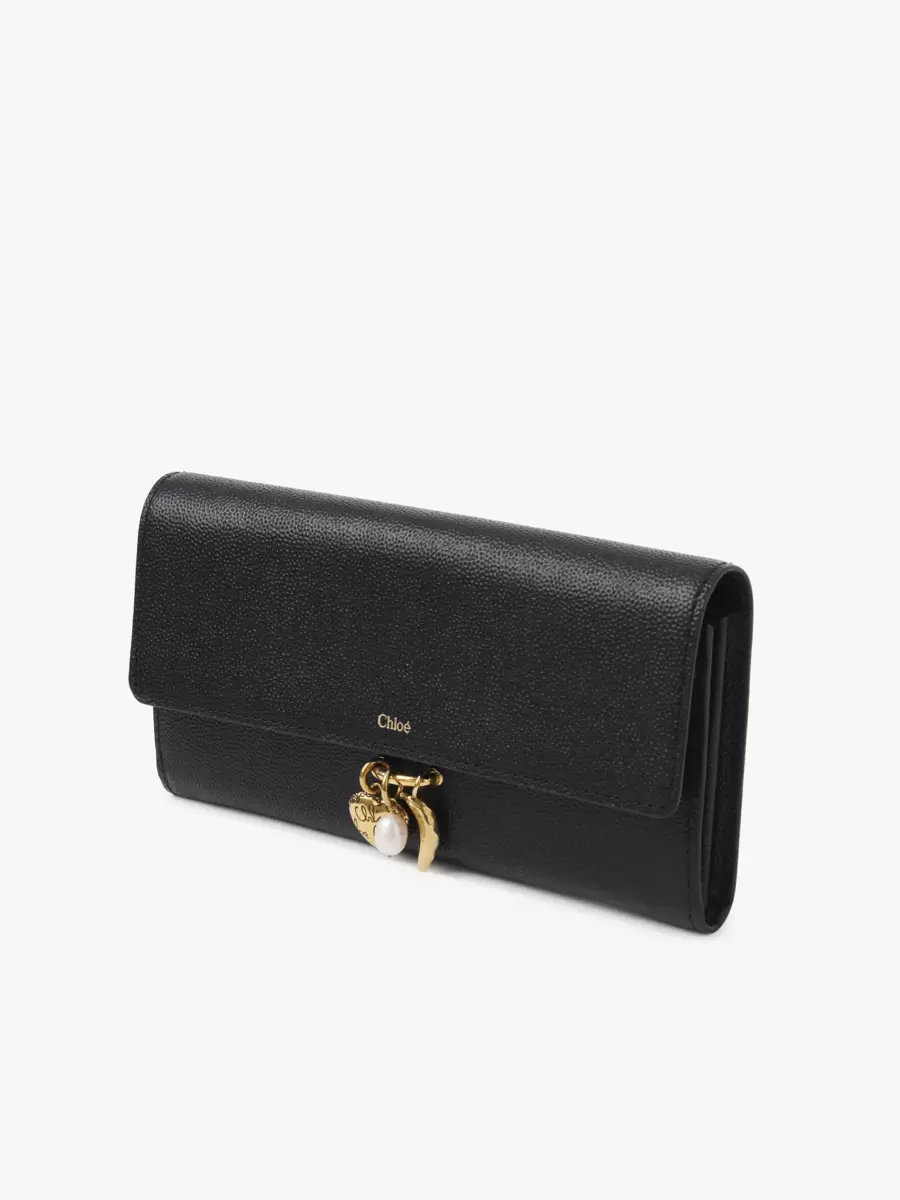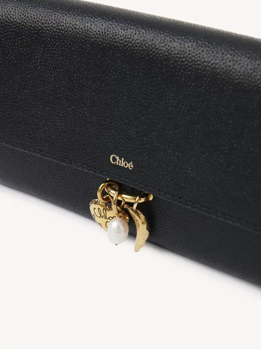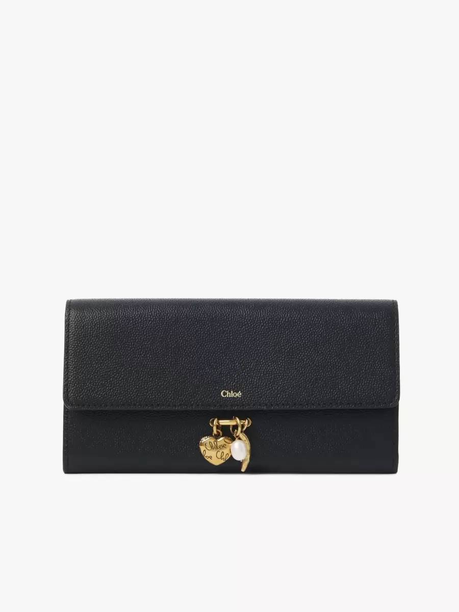 Parlak damarlı dana derisinden üretilen bu Chloé Charms kapaklı uzun cüzdan, iki ana bölme, iki cep ve birden fazla kart yuvasına sahiptir.