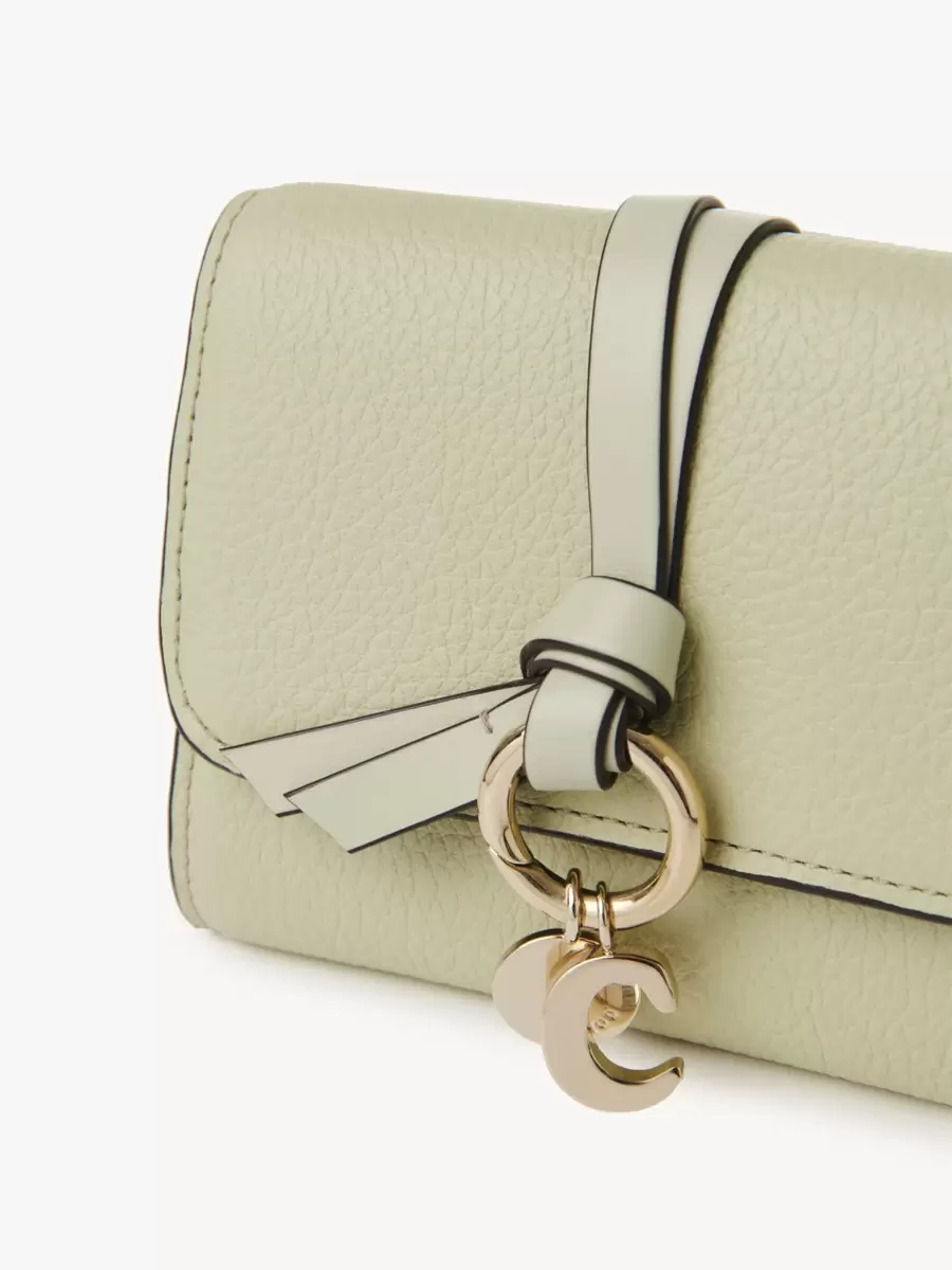 Maison’un ikonik Alphabet serisi, dokulu ve parlak dana derisinden yapılmış bu üç katlı cüzdanı içeriyor. Temel ihtiyaçlarınızı saklamak için tasarlanan bu cüzdanda birden fazla kart yuvası ve bir düz cep bulunuyor. Ön kısmı düğümlü bir halka ve Chloé tasarımı altın baş harfleriyle süslenmiş.