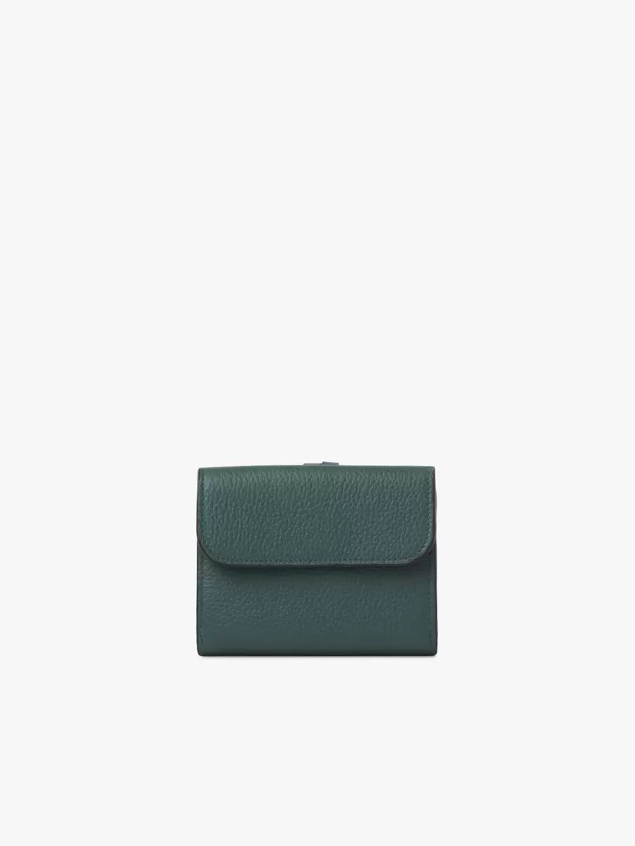 İki renkli, damarlı ve parlak dana derisinden yapılmış küçük üç katlı cüzdan, parlak dana derisi