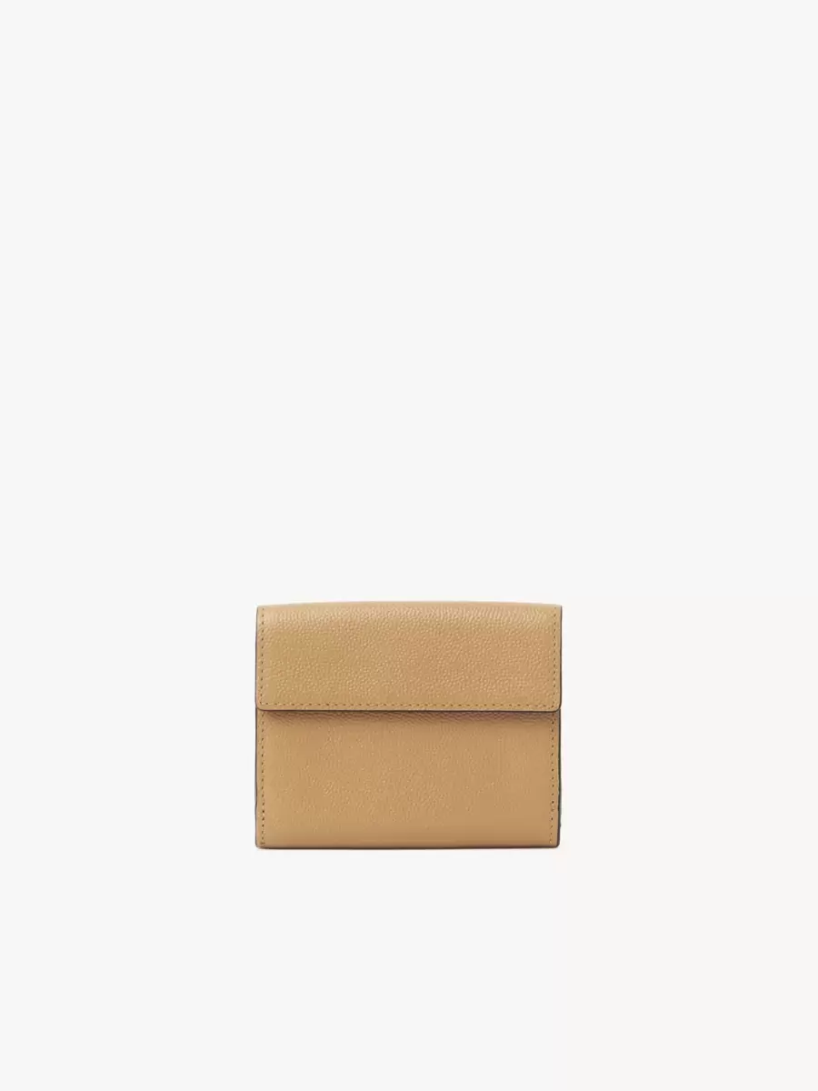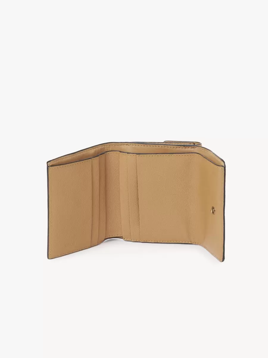 Parlak damarlı dana derisinden üretilen bu küçük Chloé Charms üç katlı cüzdan, bir banknot bölmesi ve birden fazla kart yuvasına sahiptir.