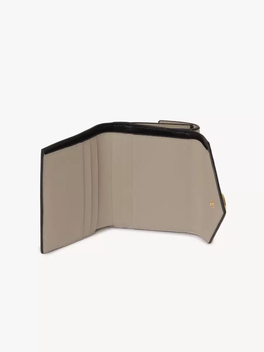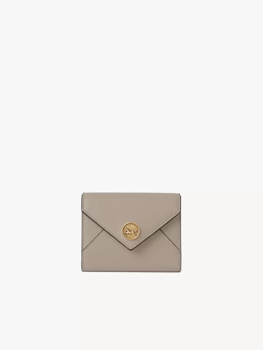 Tenli keçi derisinden üretilen küçük Zarf üç katlı, bir banknot bölmesi, bir bozuk para cebi ve altı kart yuvasına sahiptir.