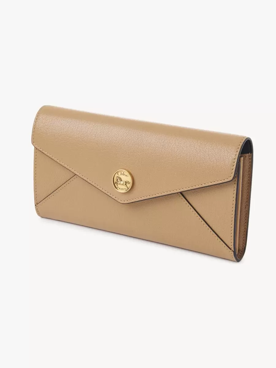 Tenli keçi derisinden kapaklı uzun Envelope cüzdan