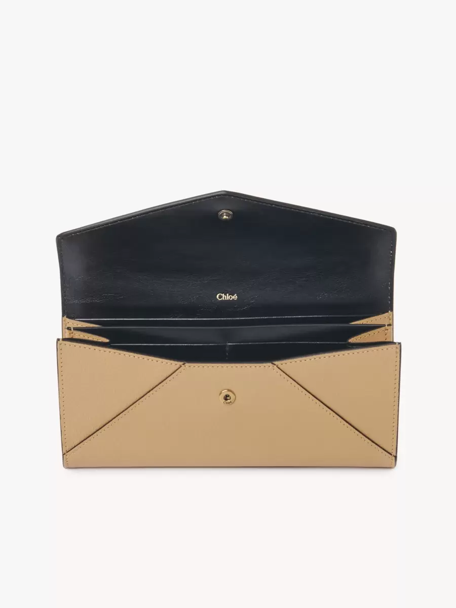 Tenli keçi derisinden üretilen bu kapaklı uzun Envelope cüzdan, iki ana bölme, 12 kart yuvası ve fermuarlı bir dış cebe sahiptir.