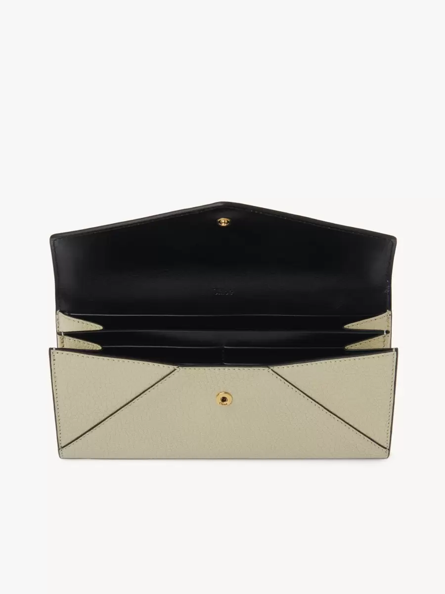 Tenli keçi derisinden üretilen bu kapaklı uzun Envelope cüzdan, iki ana bölme, 12 kart yuvası ve fermuarlı bir dış cebe sahiptir.