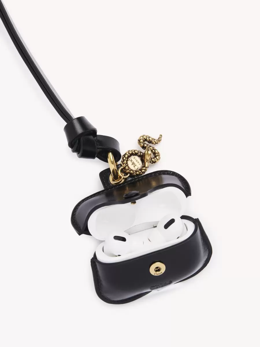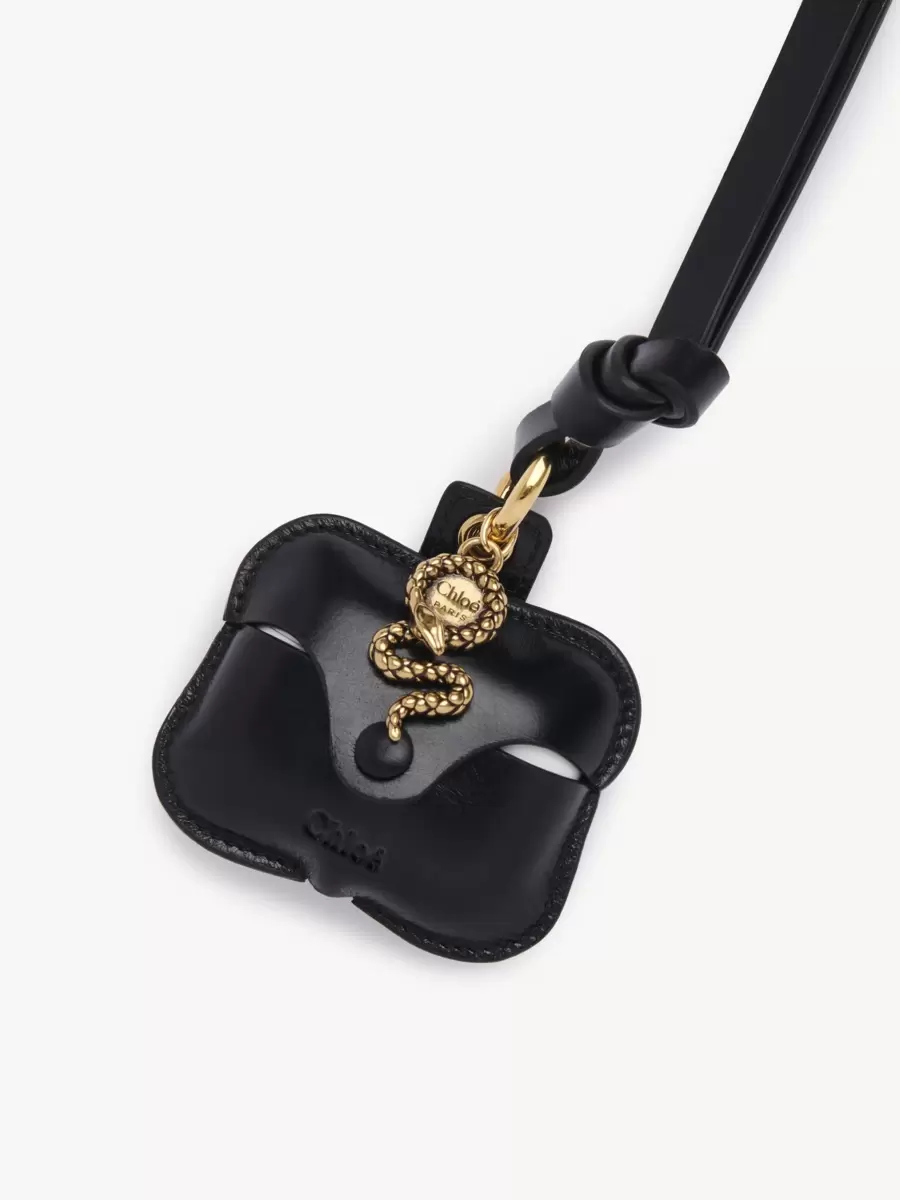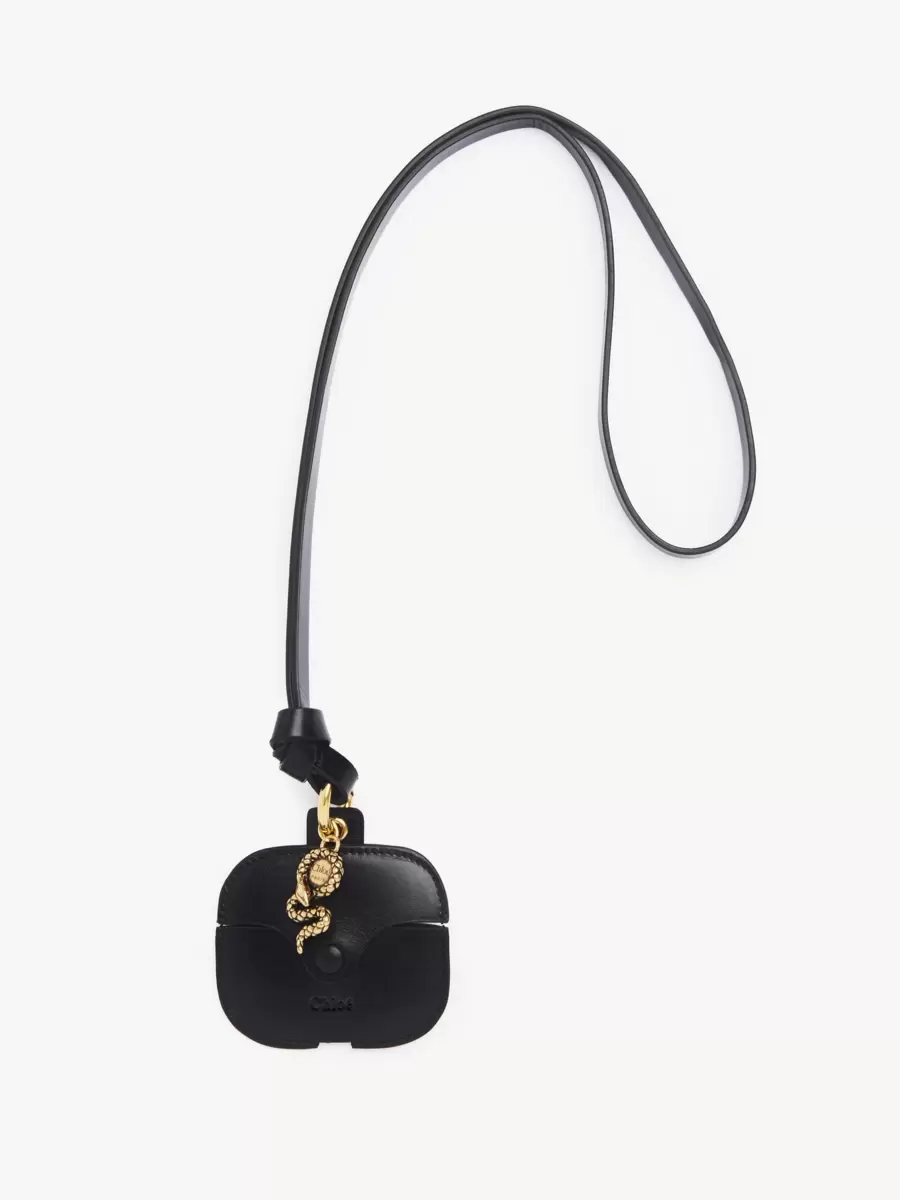 Tutarlı manda derisinden üretilen bu Chloé Symbols kulaklık kılıfı, arşivlik bir Chloé elbisesindeki işlemelerden esinlenerek tasarlanmış vintage altın pirinç bir yılanla süslenmiştir.