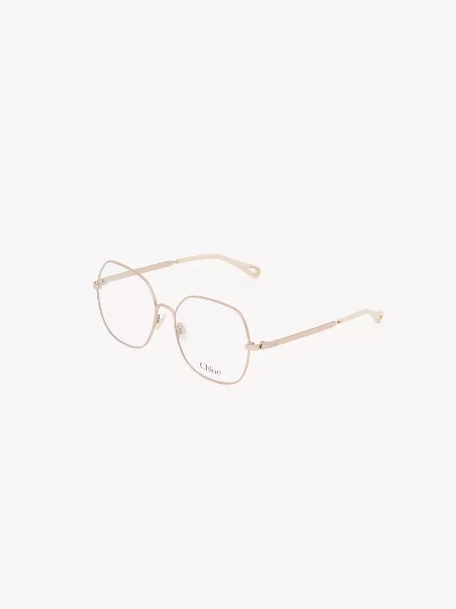 Bu Aly kare gözlükler, parlak gül rengi altın metalden yapılmış hafif bir grafik çerçeveye sahiptir.