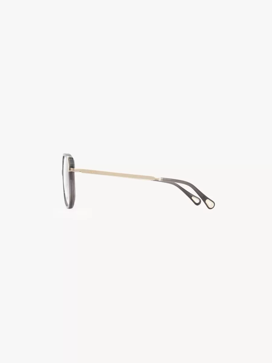 Chloé logosu şakaklarda yer alırken, şakak uçlarındaki damla şeklindeki açıklıklar bu gözlükleri Chloé’nin gözlük takılarıyla uyumlu hale getirir.
