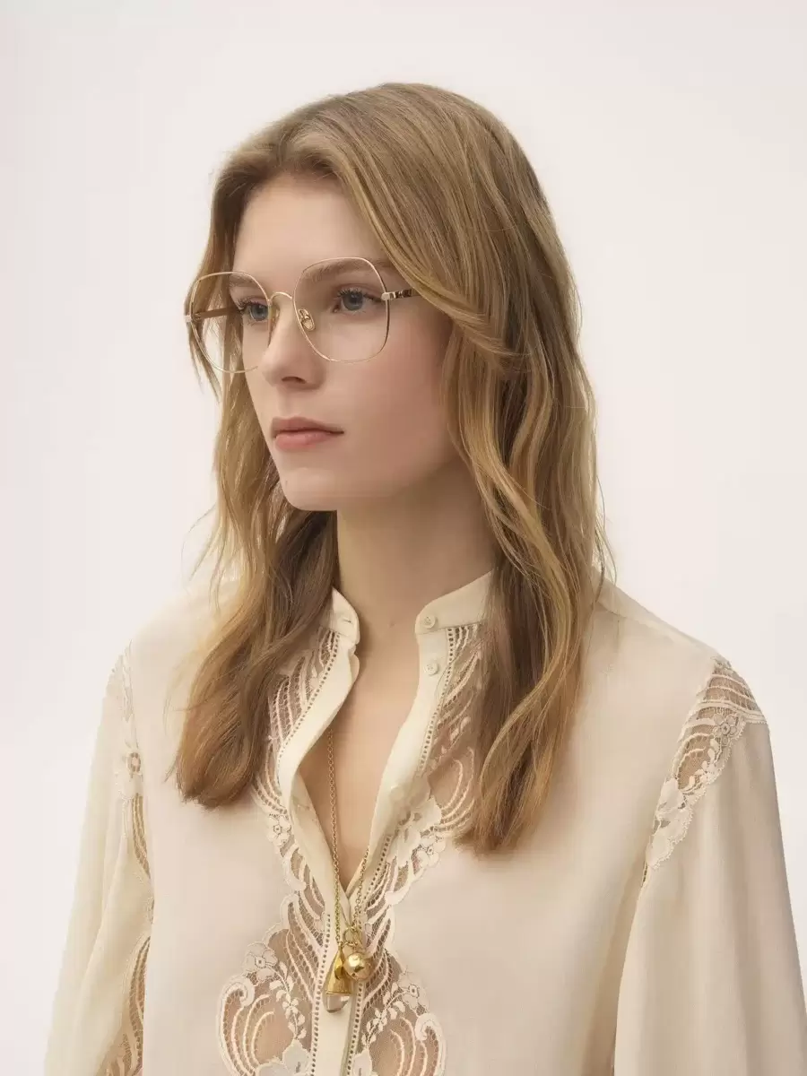 Chloé logosu şakaklara detay verirken, şakak uçlarındaki damla şeklindeki açıklıklar bu gözlükleri Chloé’nin gözlük takılarıyla uyumlu hale getirir.