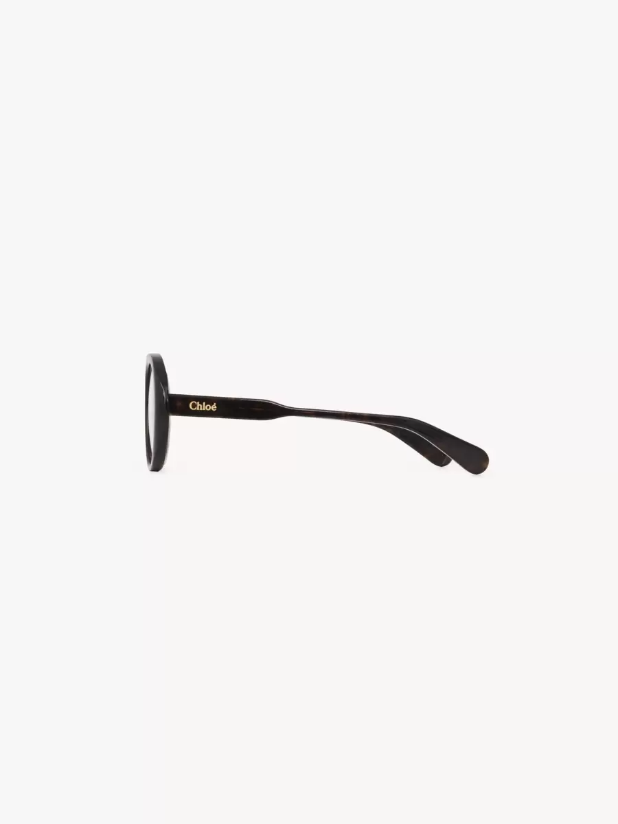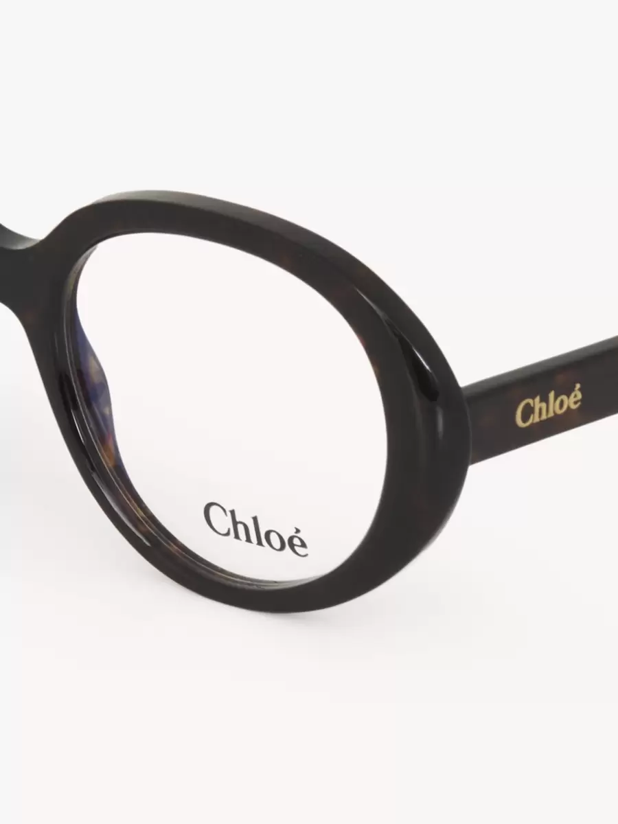 Zamansız Havana çerçeve, imza niteliğinde bir görünüm için altın tonlarında Chloé logosu gravürüne sahiptir. Sağ sapın iç kısmındaki kazınmış metin, modelin benzersiz kompozisyonunu gösterir.