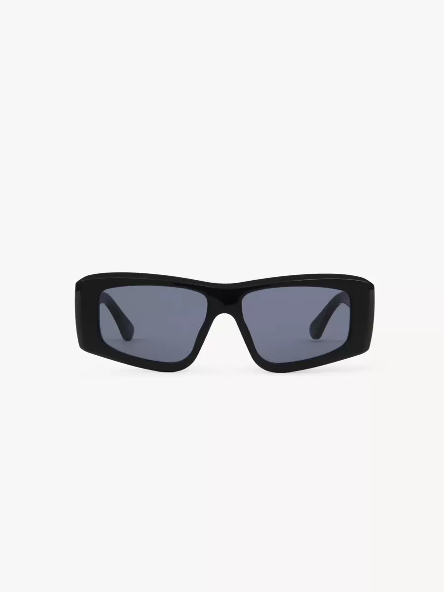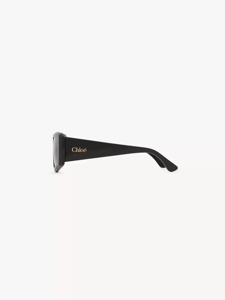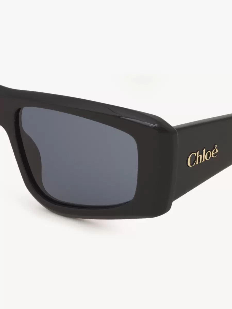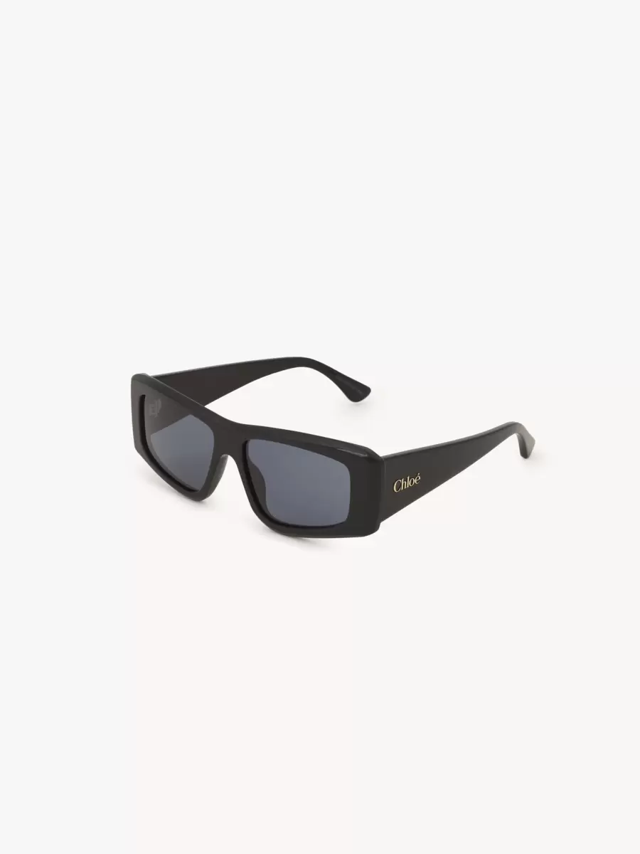 Bu Izia dikdörtgen güneş gözlüğü, kalın, düşük etkili asetattan yapılmış, fütüristik siyah eğimli çerçeveyi, düz mavi camlarla birleştiriyor. Konik saplar, altın tonlu Chloé logo plakasıyla imzalanmış.