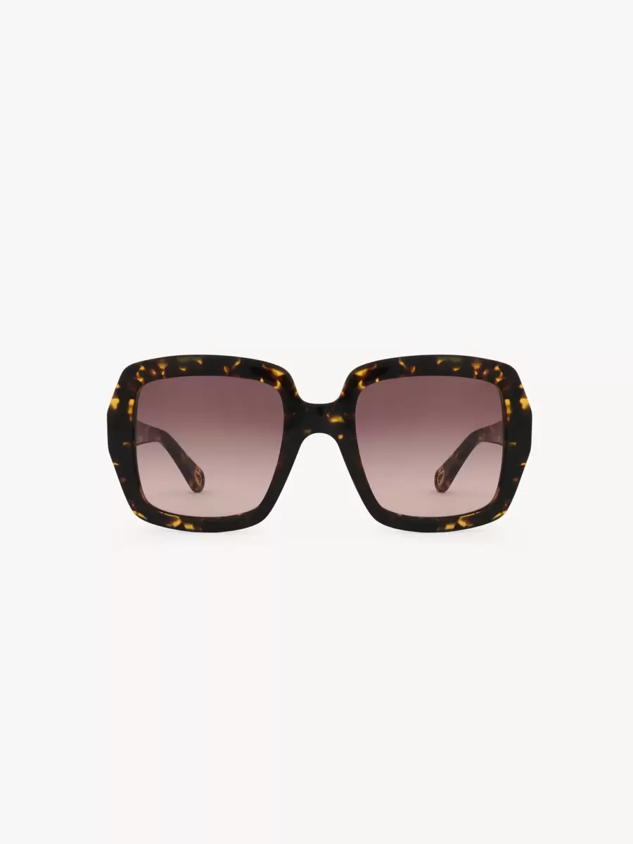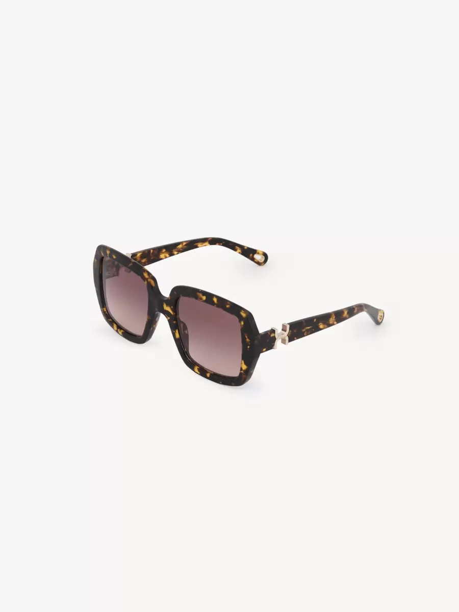 Şakak uçlarındaki damla şeklindeki açıklıklar, bu güneş gözlüklerini Chloé’nin gözlük takılarıyla uyumlu hale getiriyor.
