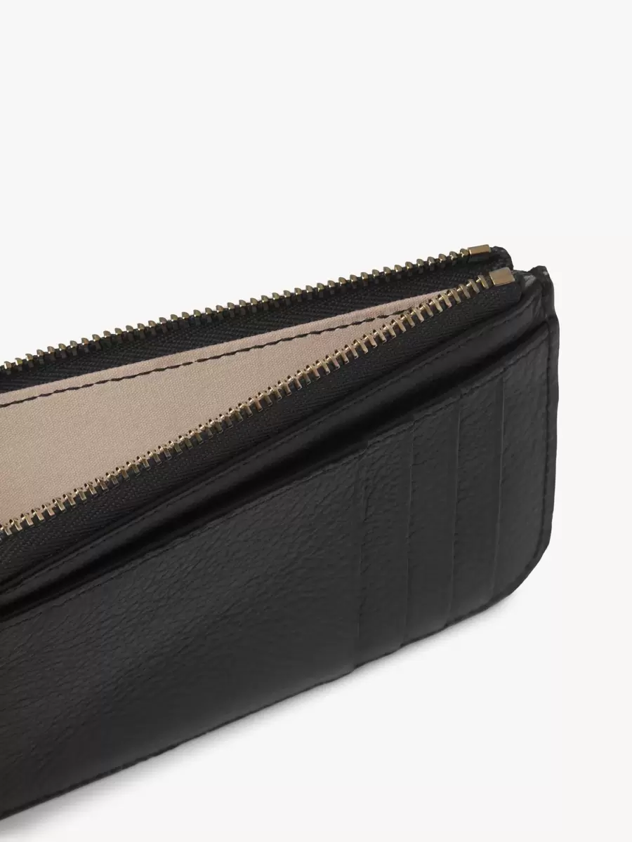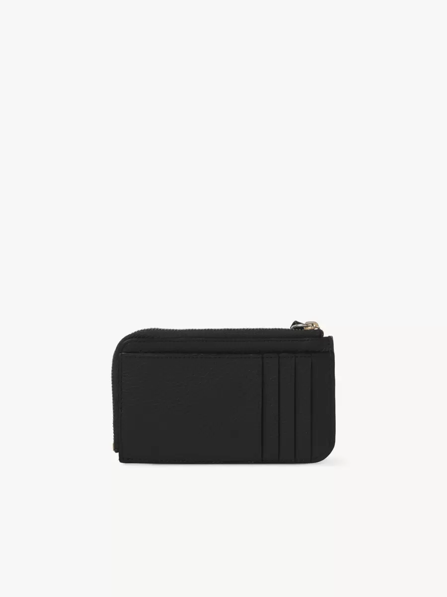 Sadece temel ihtiyaçlarınızı sığdıracak şekilde küçültülmüş bu Alphabet deri cüzdan, arkada pratik düz bir ceple birlikte dört kart yuvasına sahiptir.