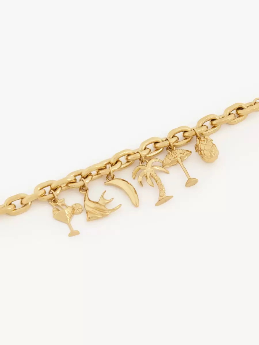 Chloé Ayçiçeği altın pirinçten yapılmış kalın bileklik, Maison’un DNA’sına dayanan yazdan ilham alan çok sayıda tılsım içeriyor.