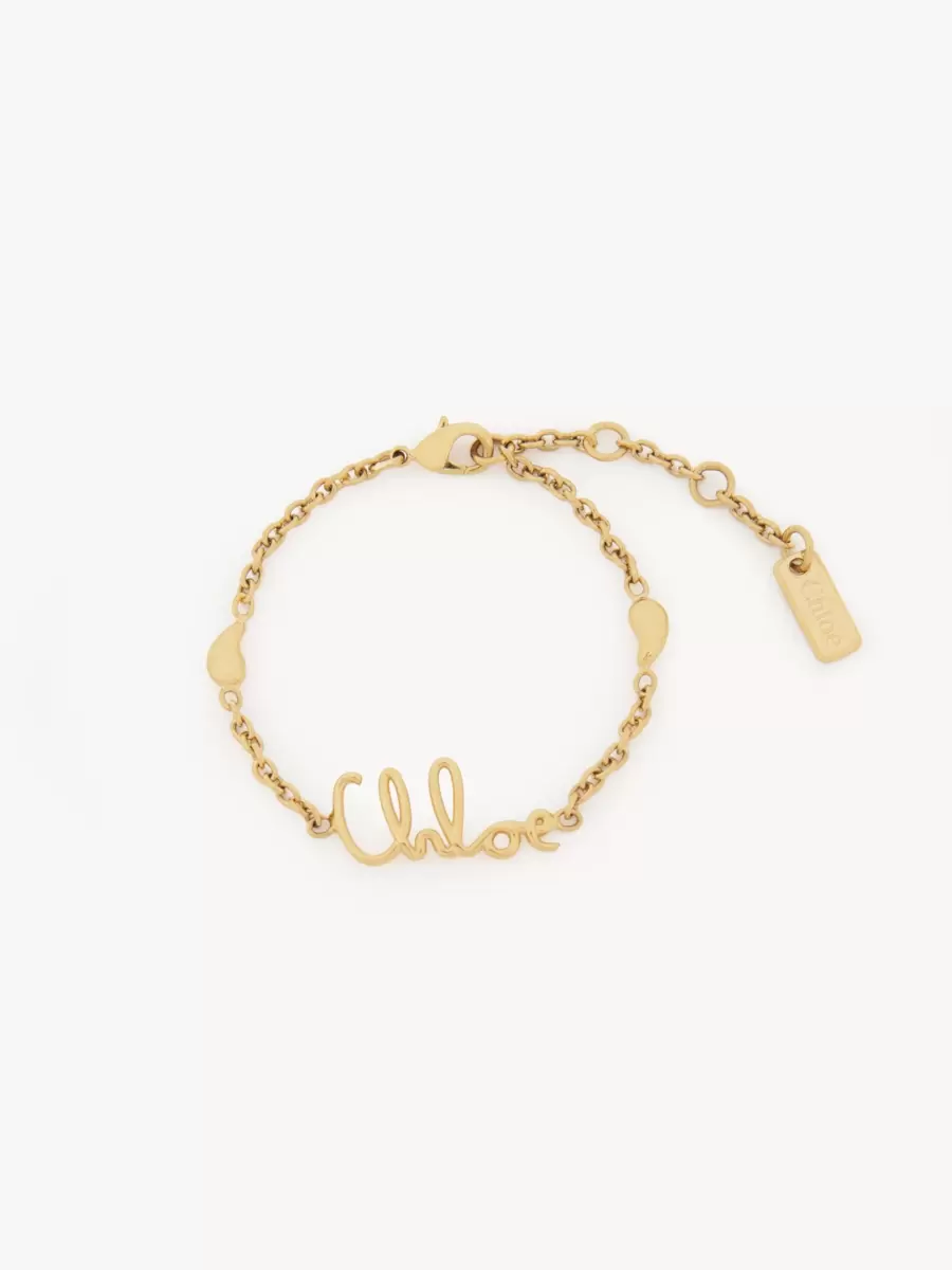 Chloé’nin ikonik bilekliği, klasik bir zincir kemerden ilham alınarak vintage altın pirinçten üretilmiştir. Chloé logosu yumuşak, el yazısı bir fontla vurgulanırken, zincirin etrafındaki vurgulu süslemeler Chloé’nin “é” harfine gönderme yapar.