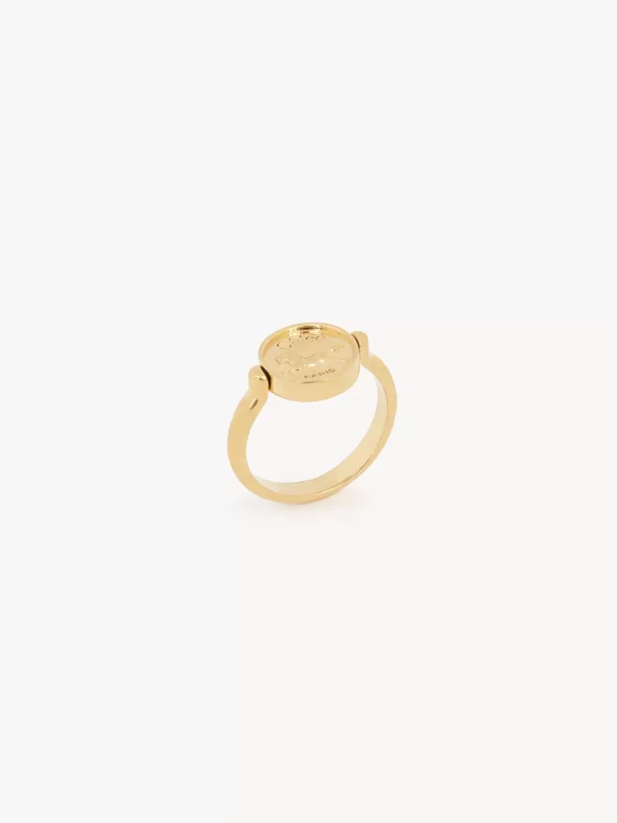 Vintage altın pirinçten yapılmış Chloé Charms yüzük. Markanın DNA’sını yansıtan yüzük, bir tarafında Chloé logosu, diğer tarafında Chloé At madalyası bulunan çift taraflı bir madalyon içeriyor.