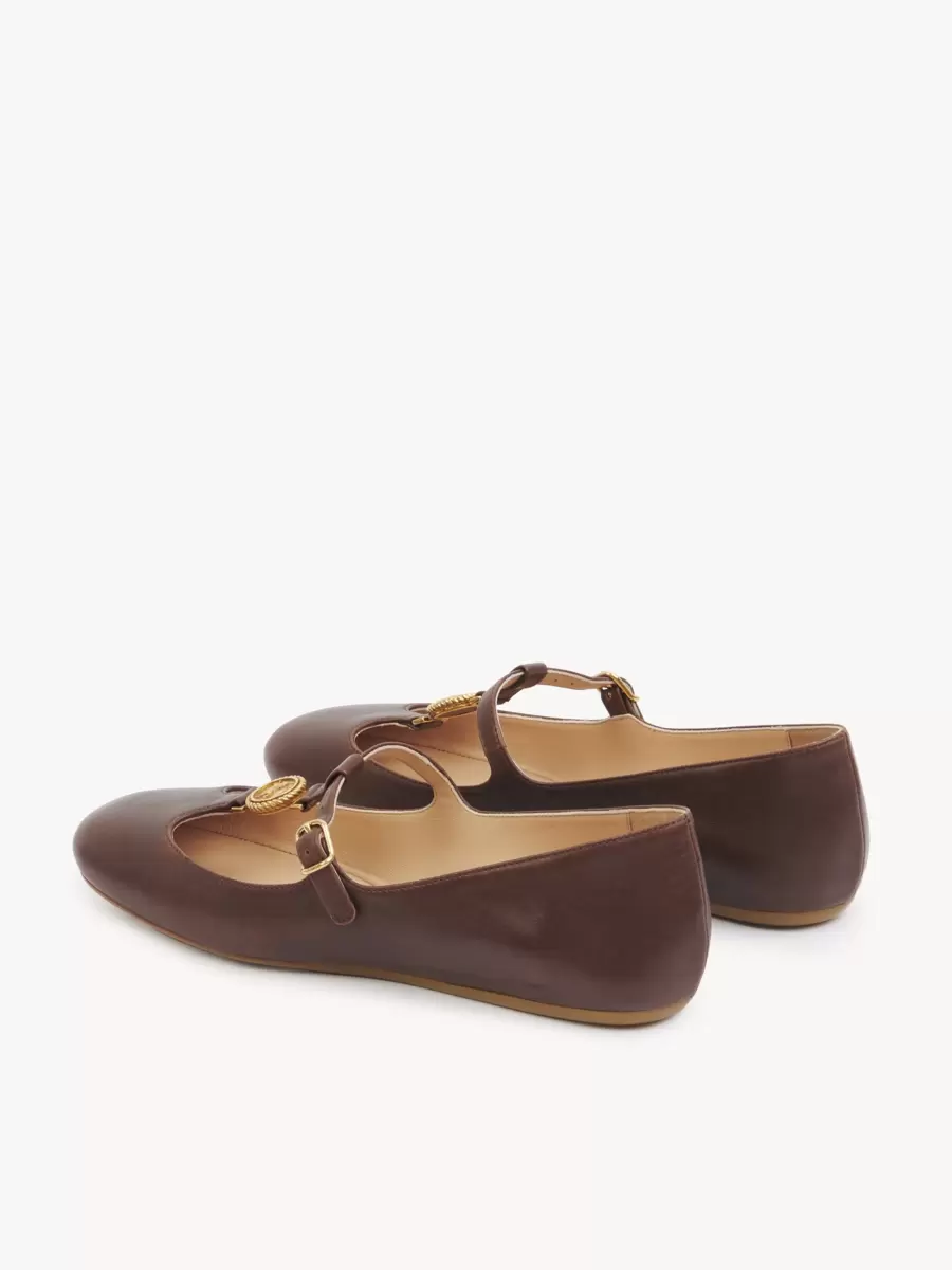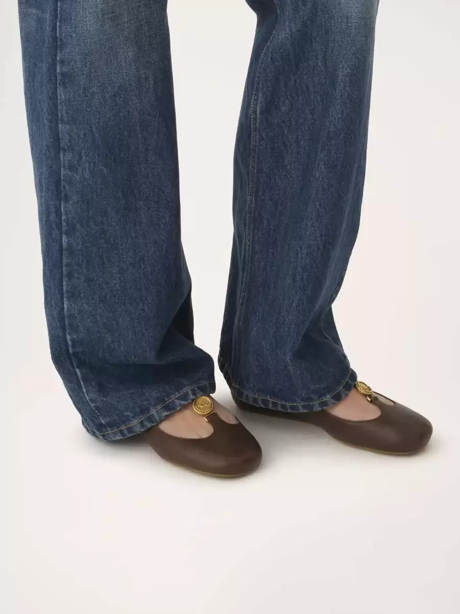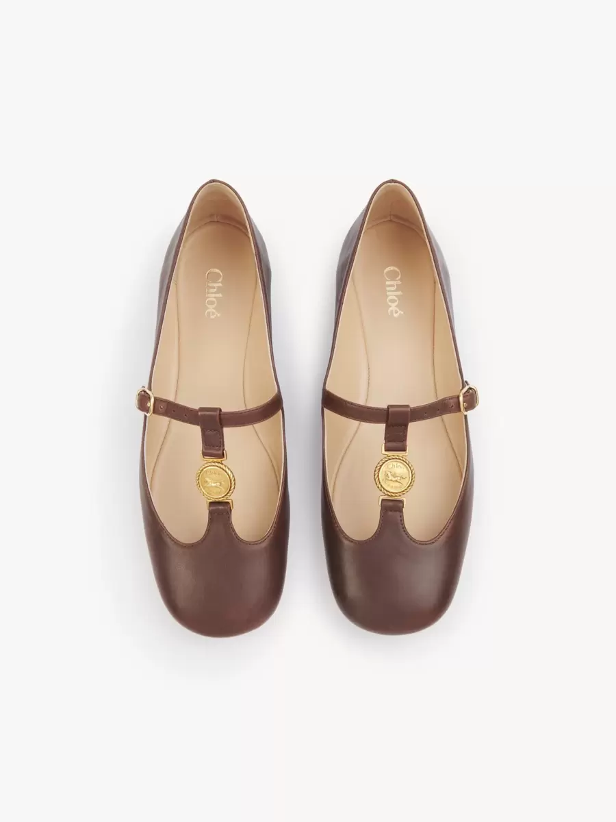 Bu Leonore babetler, Mary-Jane silüetinde parlak kuzu derisinden üretilmiştir ve yumuşak yuvarlak burun ile hafif ve esnek kauçuk tabana sahiptir. Maison’un imzası niteliğindeki altın rengi Horse Medal ile tamamlanmıştır.