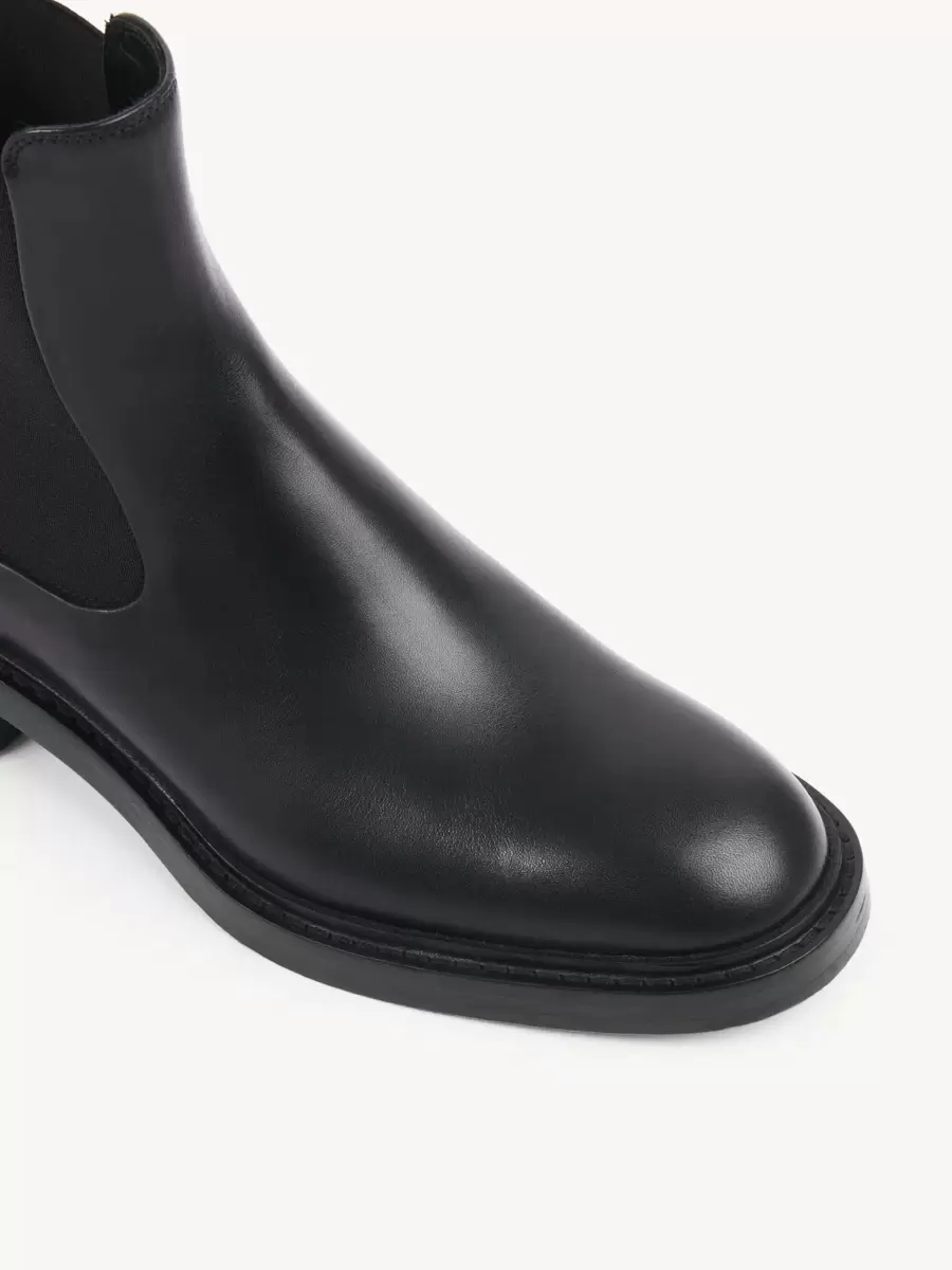 Bu Marcie bilek botları, zamansız bir Chelsea stilinde parlak dana derisinden üretilmiştir.
