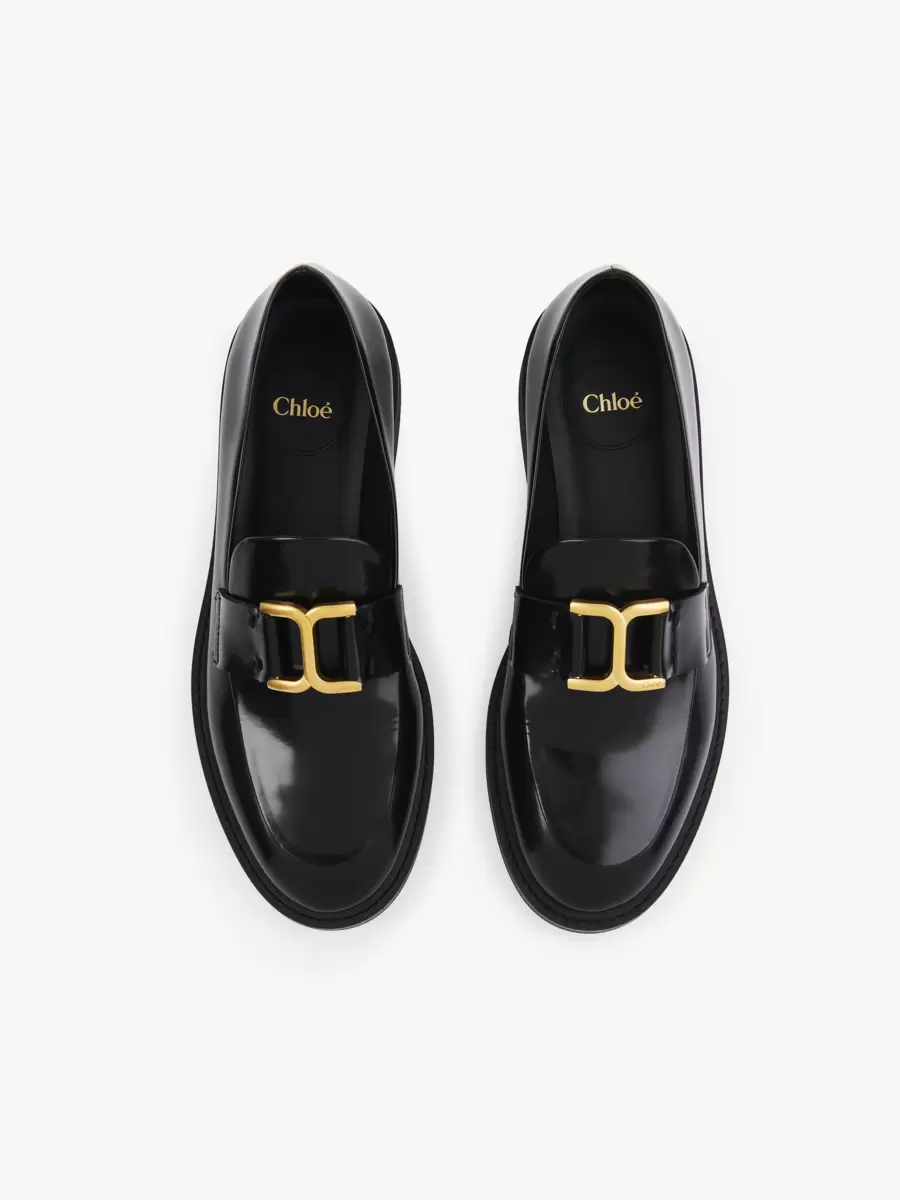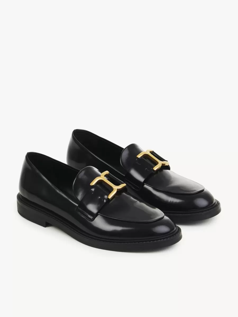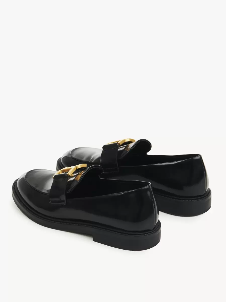 Minimalist üst kısım, badem burun şekli ve hafif topukla birleşerek gün boyu konfor sağlıyor. Marcie’nin Chloé işlemeli altın tonlu aksesuarları, bu düz mokasenlere imza niteliğinde bir görünüm kazandırıyor.
