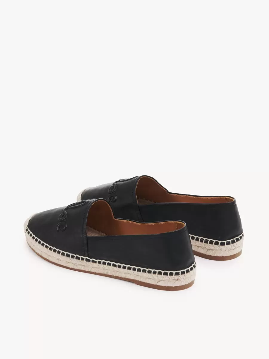İşlemeli deriden üretilen Isla espadrilleri, doğal kordon taban üzerine oturtulmuştur. Ön kısmına, eski bir Chloé kemerinden esinlenerek el yazısıyla yazılmış bir imza işlenmiştir.