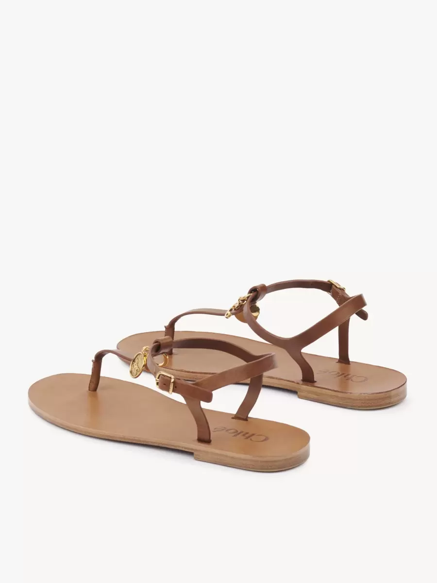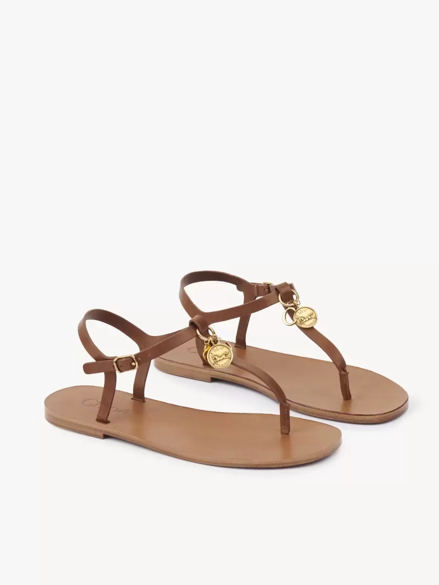 Parlak dana derisinden üretilen Chloé Charms düz sandaletler, zarif bir parmak arası sayayı ayarlanabilir tokalı bilek kayışıyla birleştiriyor. Ön kısım, Maison’un mirasından ilham alan zarif altın tonlu tılsımlarla süslenmiş.