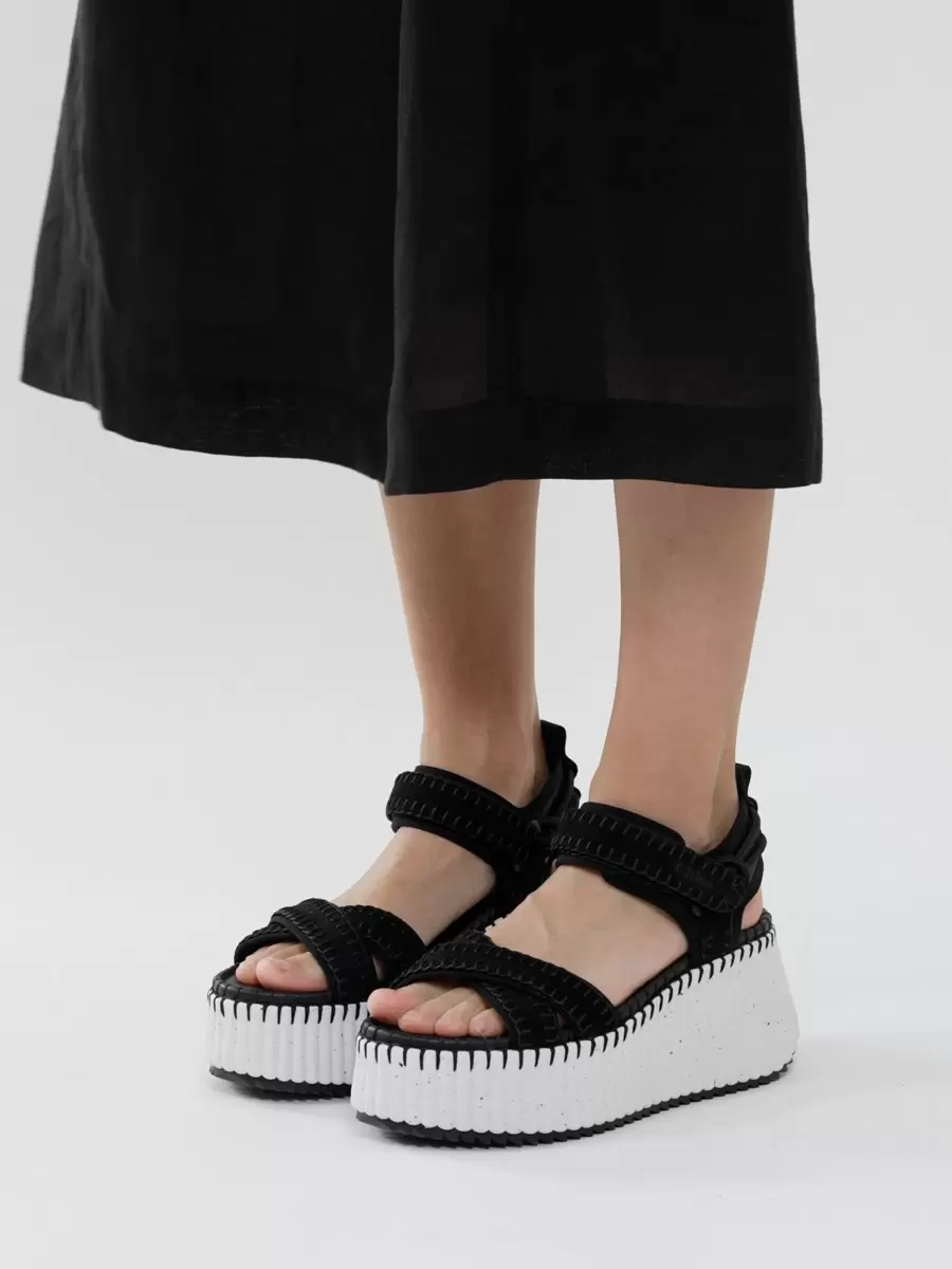Maison’un ikonik Nama serisi, aktif bir tavrı, özgün işçilik ve malzemelerin dokusal etkileşimiyle birleştiren bu düşük etkili platform sandaletleri içeriyor.