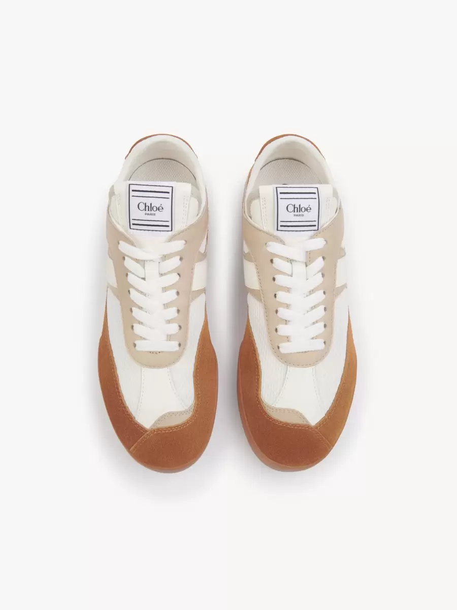 Bale ve boks dünyasından ilham alan bu Chloé Kick spor ayakkabılar, geri dönüştürülmüş aktif file ve pürüzsüz ve süet dana derisi karışımından üretilmiştir ve güncellenmiş tasarımıyla daha hafif bir silüete ve yan ve arkada kabartmalı Chloé logosuna sahiptir.