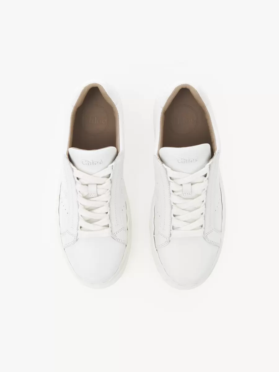 Aktif bir günlük giyim seçeneği olan bu rahat, düşük bilekli spor ayakkabı, geri dönüştürülmüş bir tabana sahip. İkonik Lauren tarağı, yanlardaki delikli Chloé logosuyla vurgulanan romantik bir dokunuş katıyor. Yuvarlak burun şekli, rahat platform silüetine kadınsı bir görünüm katarken, kauçuk 3D Chloé logosu tabana damgasını vuruyor.