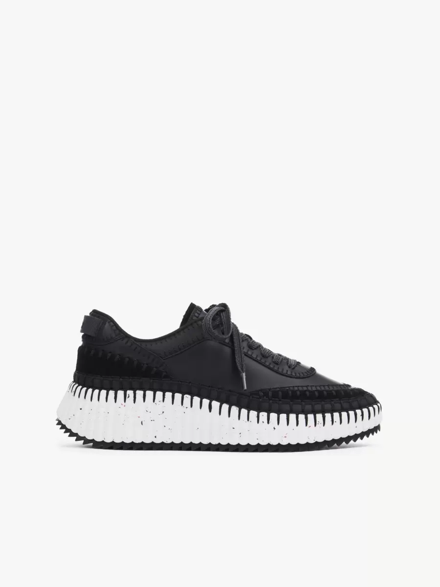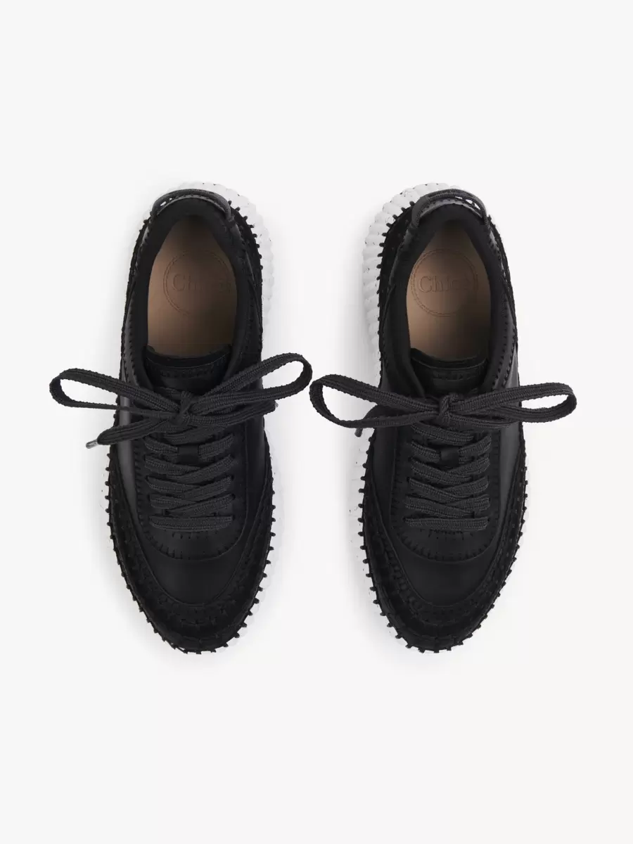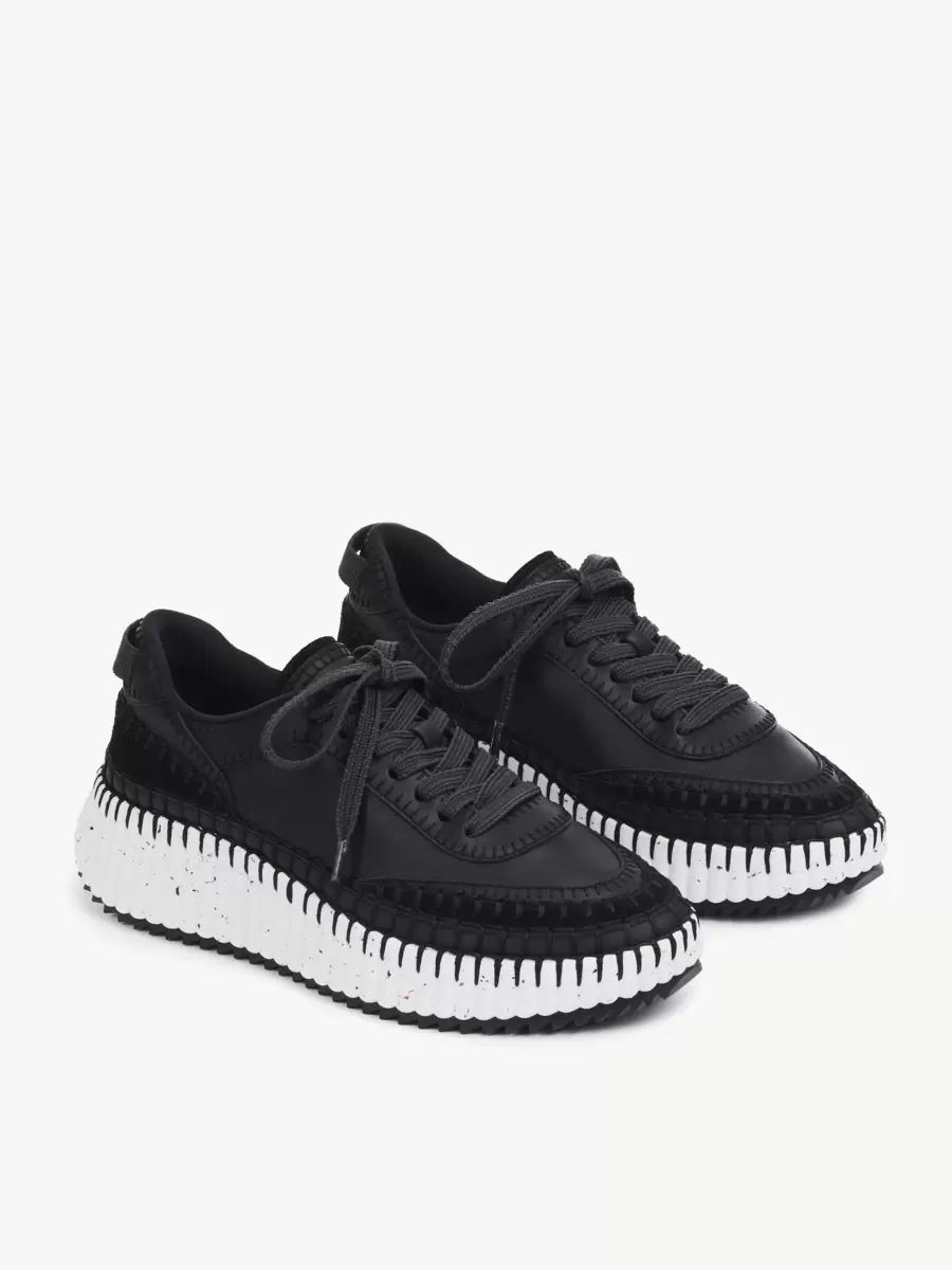 Chloé’nin ikonik Nama spor ayakkabıları, serinin kendine özgü el dikişleriyle zenginleştirilen ince bir doku etkileşimi için dana derisi karışımından üretilen iki renkli bir versiyonla yeniden yorumlanıyor.
