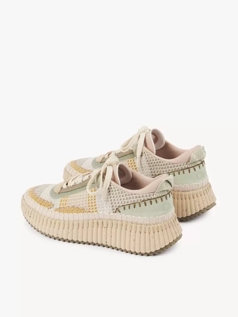 Kalın, çıkıntılı bir taban üzerine yerleştirilen ultra konforlu, hafif yapı, elle dikilmiş file saya ve arkada ve dilde imzalı Chloé logosuyla tamamlanmıştır. Şehirli bir tavır için tüm yıl boyunca giyin.