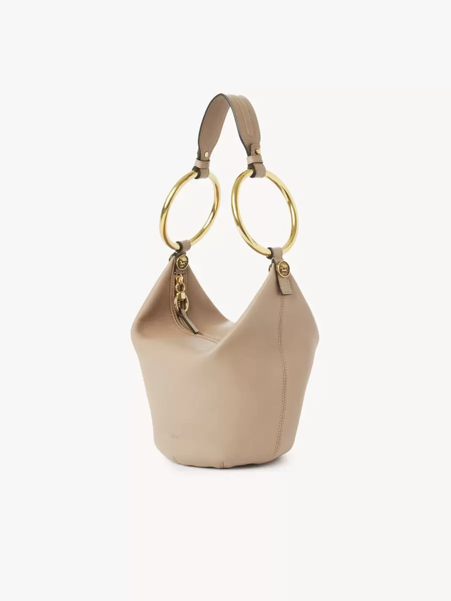 Bu küçük Bracelet omuz çantası, taneli manda derisinden üretilmiştir. Yumuşak ve yuvarlak şekli, Maison’un imzası olan Horse Medal donanımıyla sabitlenen büyük bilezik kulplarıyla daha da öne çıkar.