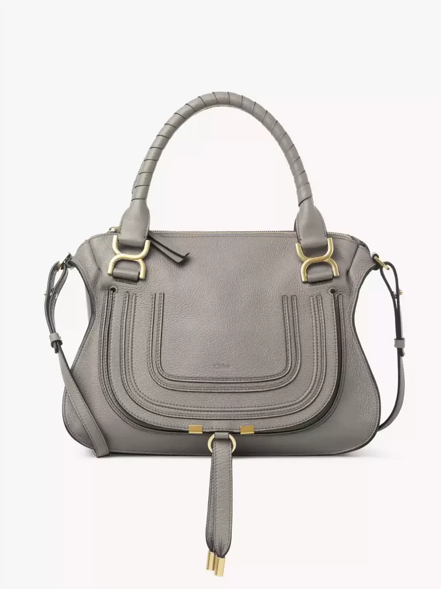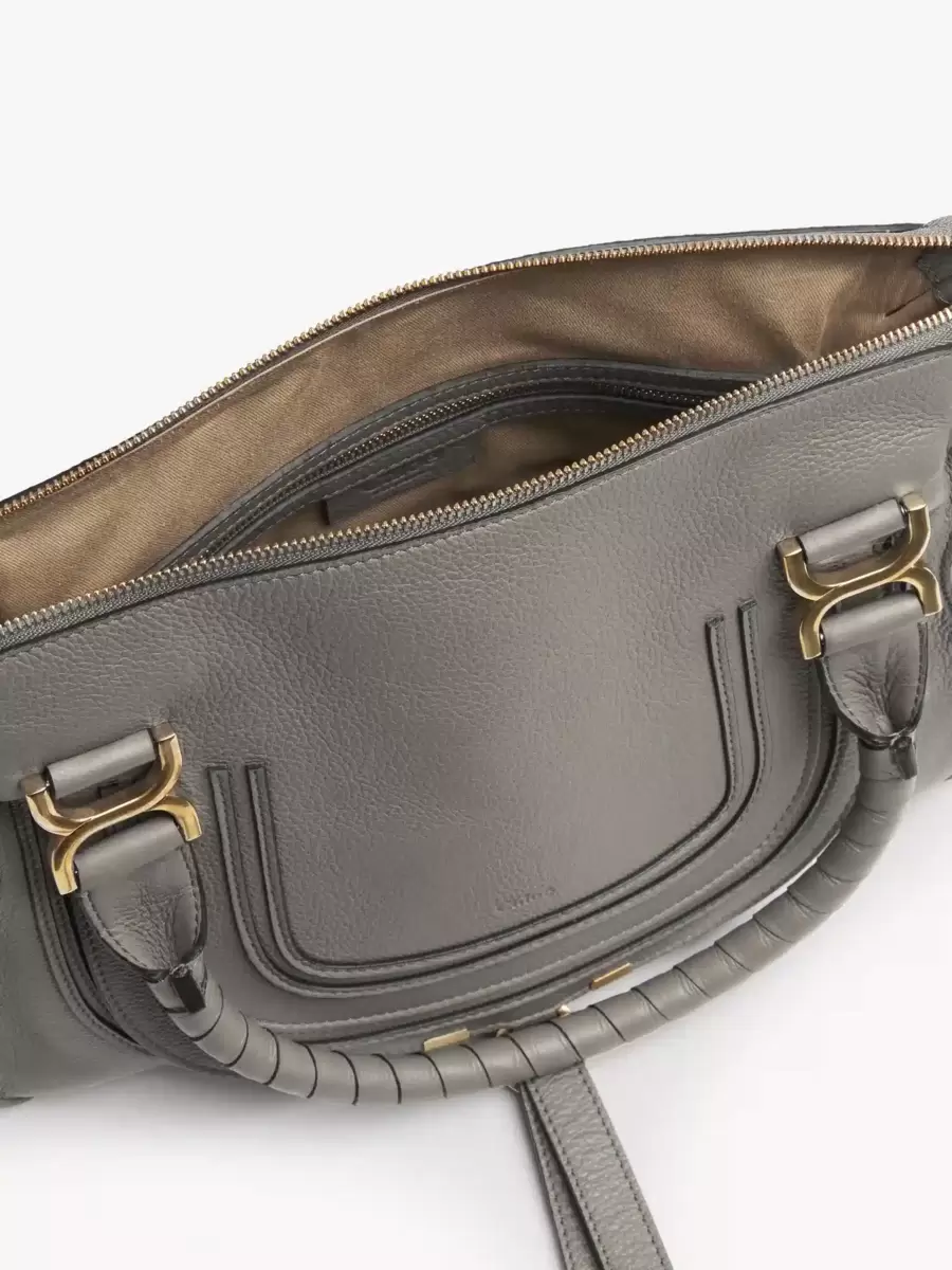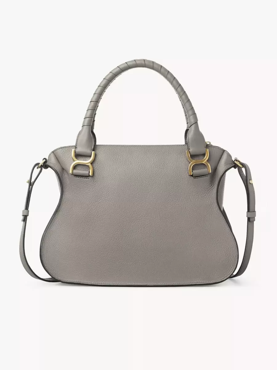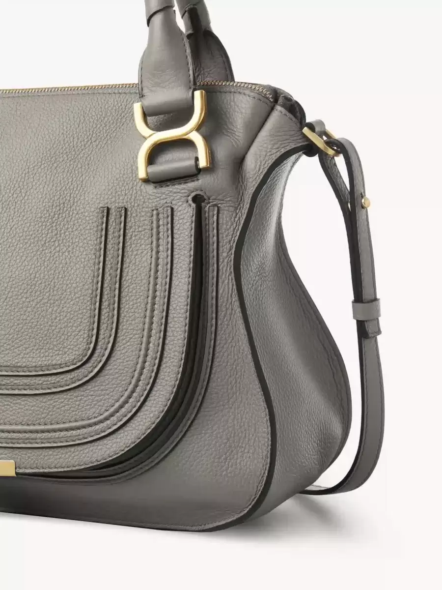 Bu ikonik Marcie çift taşıma çantası, taneli dana derisinden üretilmiş geniş ve pratik bir günlük çantadır. Temiz çizgiler ve konturlu tasarım, salaş silüeti vurgularken, elle sarılmış deri kulplar ustaca detaylar katar. Çıkarılabilir askı, rahat ve çapraz askılı bir stil sunar.