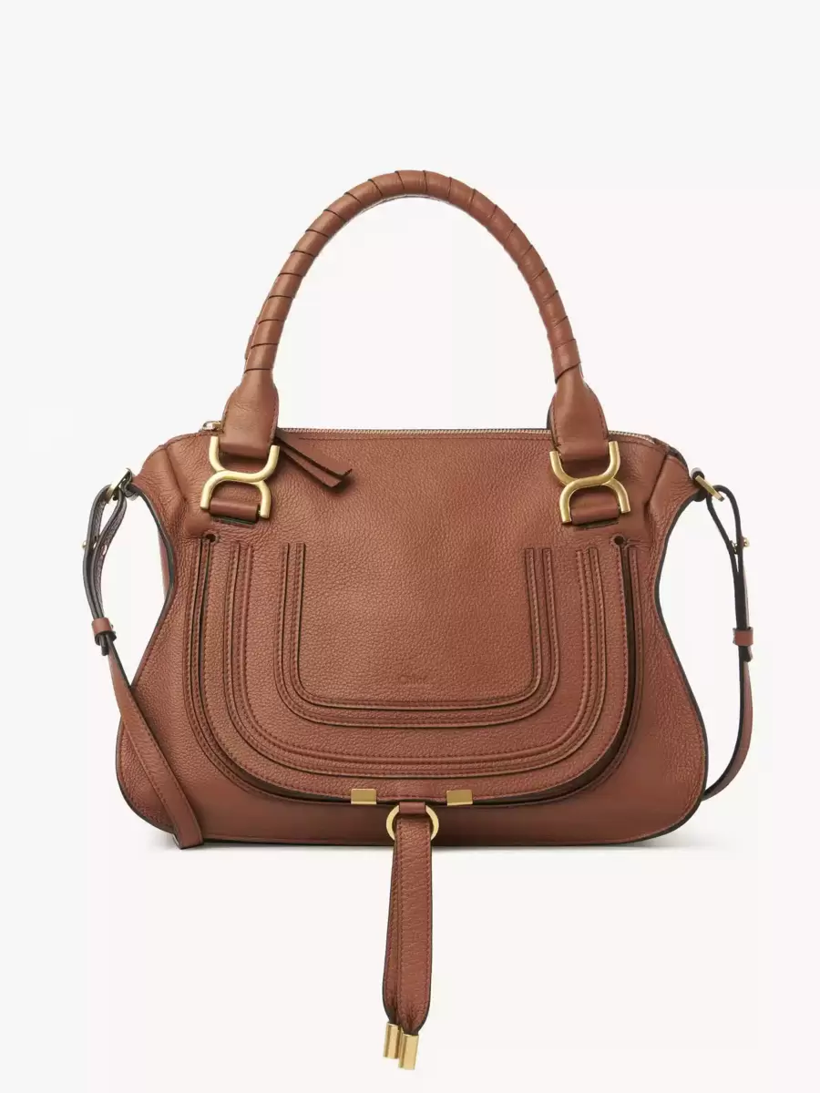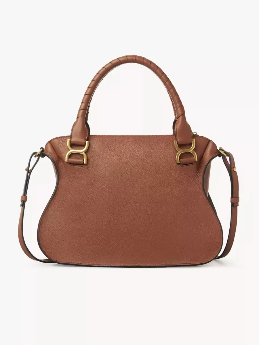 Bu ikonik Marcie çift taşıma çantası, taneli dana derisinden üretilmiş geniş ve pratik bir günlük çantadır. Temiz çizgiler ve konturlu tasarım, salaş silüeti vurgularken, elle sarılmış deri kulplar ustaca detaylar katar. Çıkarılabilir askı, rahat ve çapraz askılı bir stil sunar.