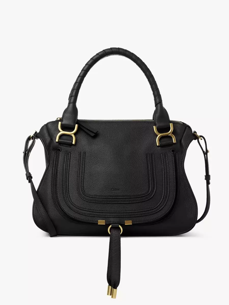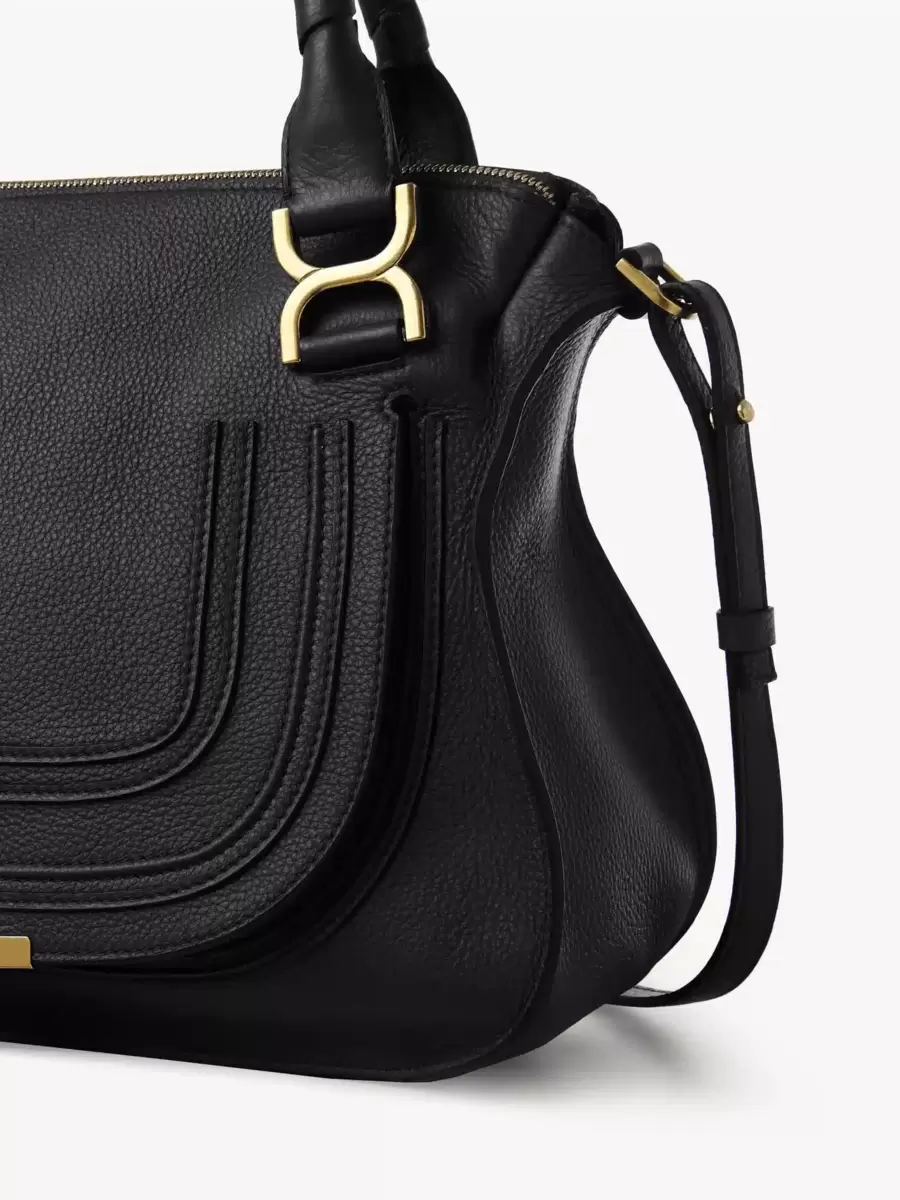 Bu ikonik Marcie çift taşıma çantası, taneli dana derisinden üretilmiş geniş ve pratik bir günlük çantadır. Temiz çizgiler ve konturlu tasarım, salaş silüeti vurgularken, elle sarılmış deri kulplar ustaca detaylar katar. Çıkarılabilir askı, rahat ve çapraz askılı bir stil sunar.