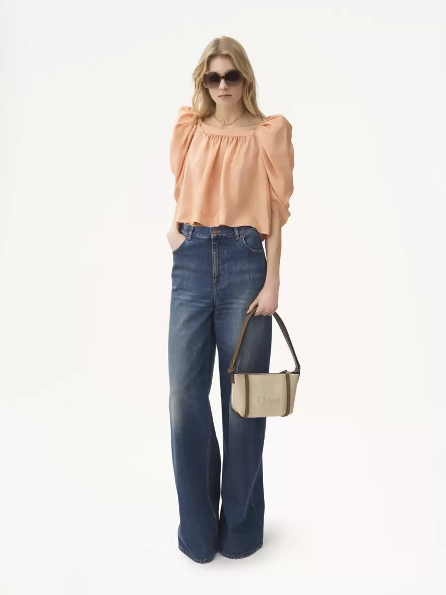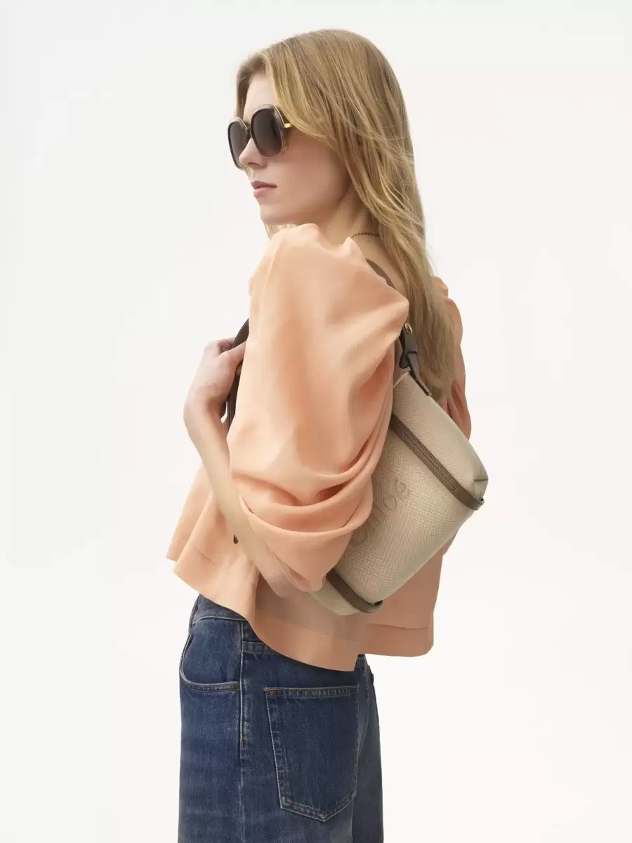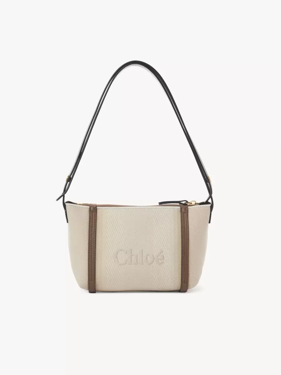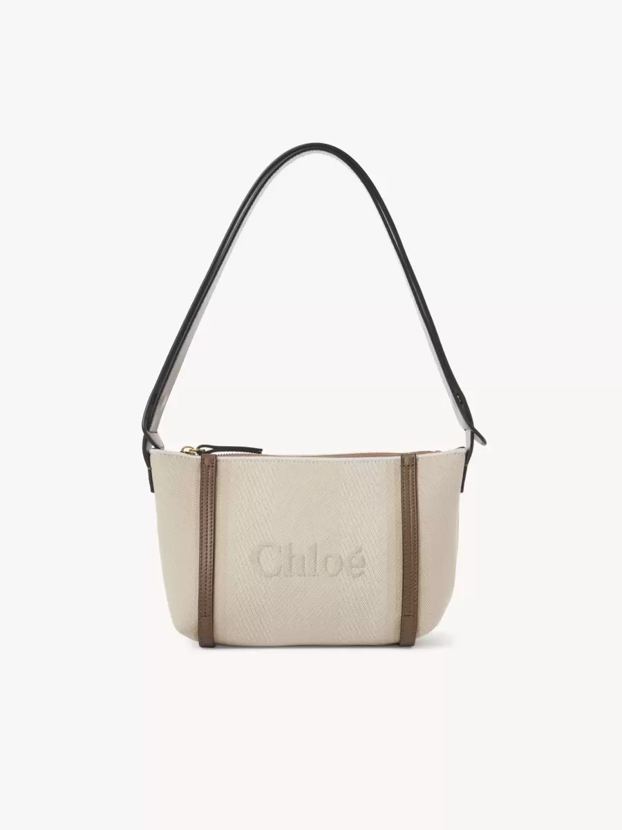 Bu Chloé Carry fermuarlı omuz çantası, geri dönüştürülmüş pamuklu kanvas jakarlı kumaştan üretilmiştir ve kontrast dikey deri bantlar ve büyük boy Chloé logosu ile süslenmiştir.