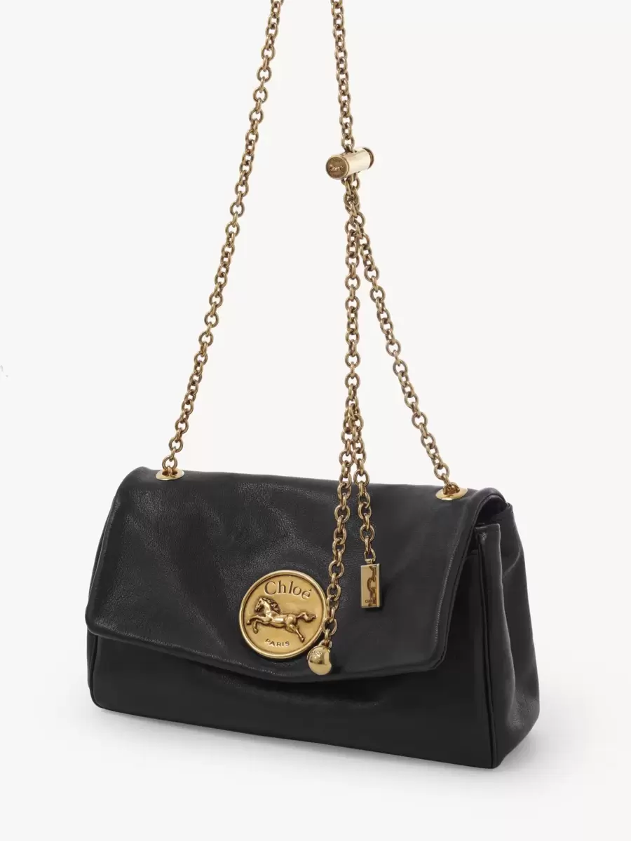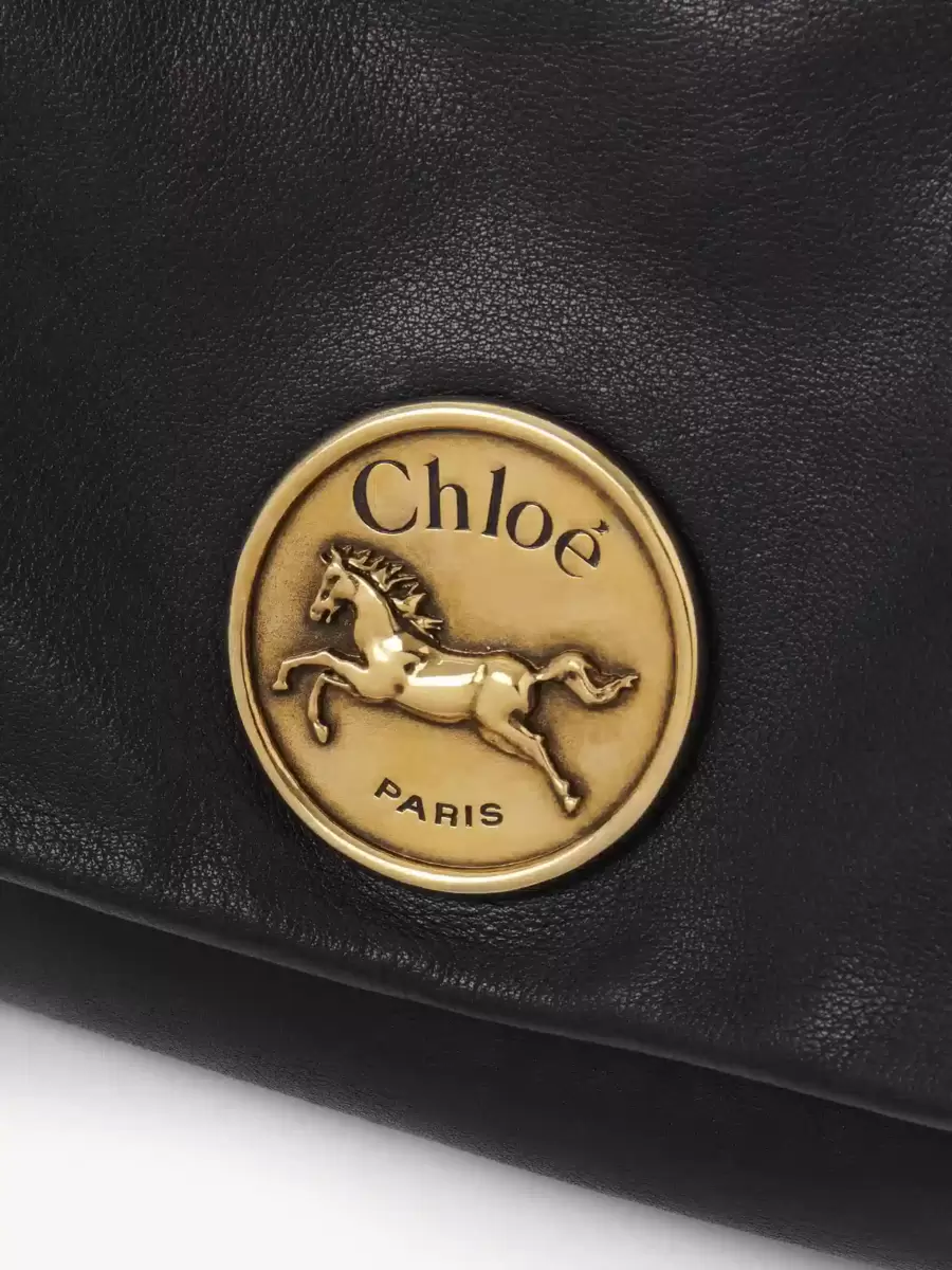Tarlalı manda derisinden üretilen bu Chloé Heritage omuz çantası, markanın kodlarından ilham alıyor. Esnek ve kavisli yapısı, altın tonlu aksesuarlarla süslenerek, imzalı Horse Medal kapatmayı sallanan tılsımlarla birleştiriyor.