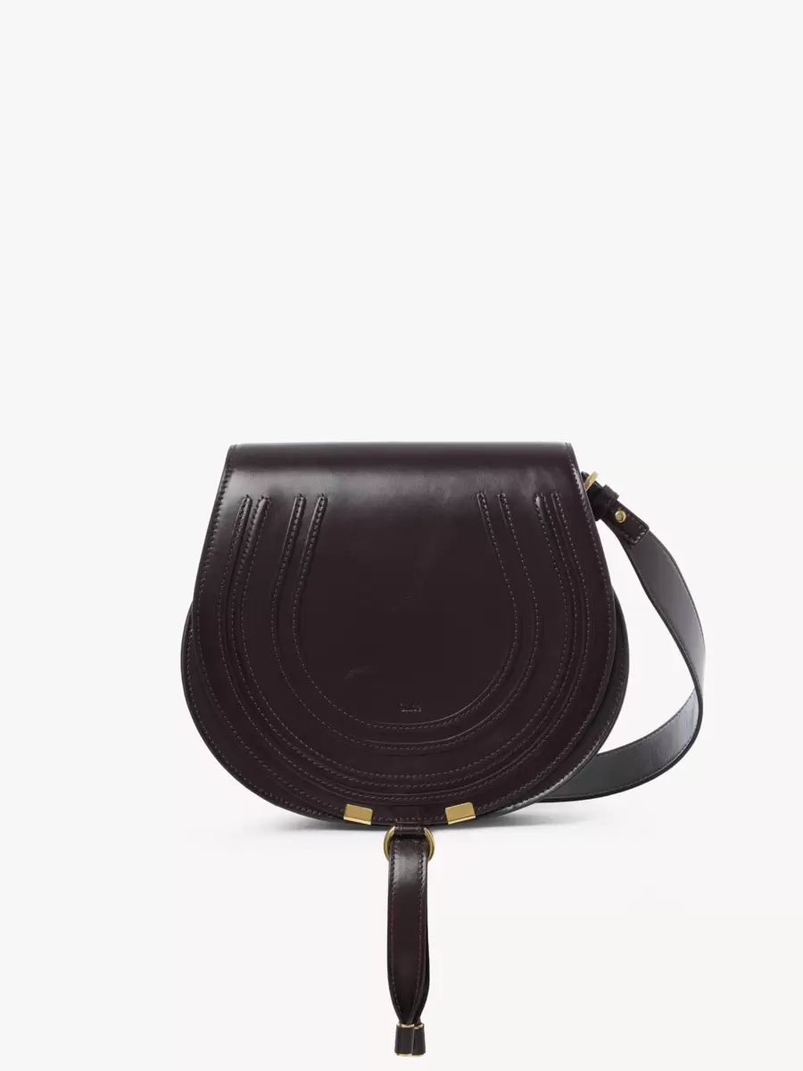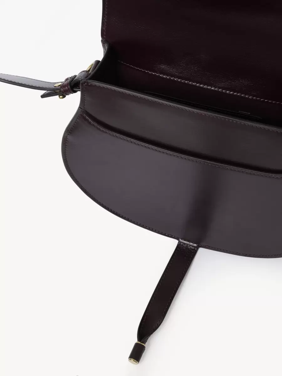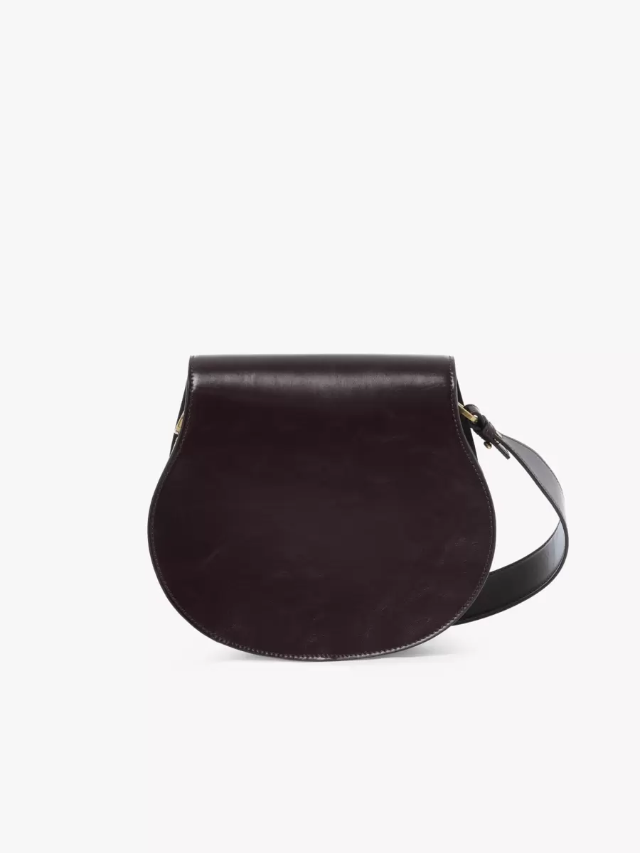 Bu Marcie eyer çantası, yuvarlak bir silüete ve temiz bir üst çizgiye sahip parlak dana derisinden üretilmiştir. Kapakta, serinin ikonik eyer dikişi bulunur ve imza niteliğindeki sarkan deri püsküllerle sabitlenmiştir.