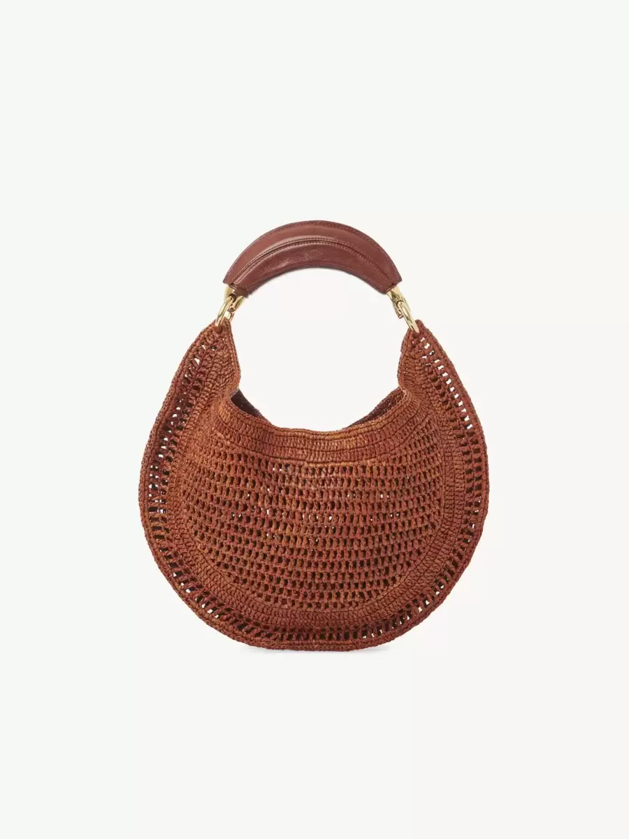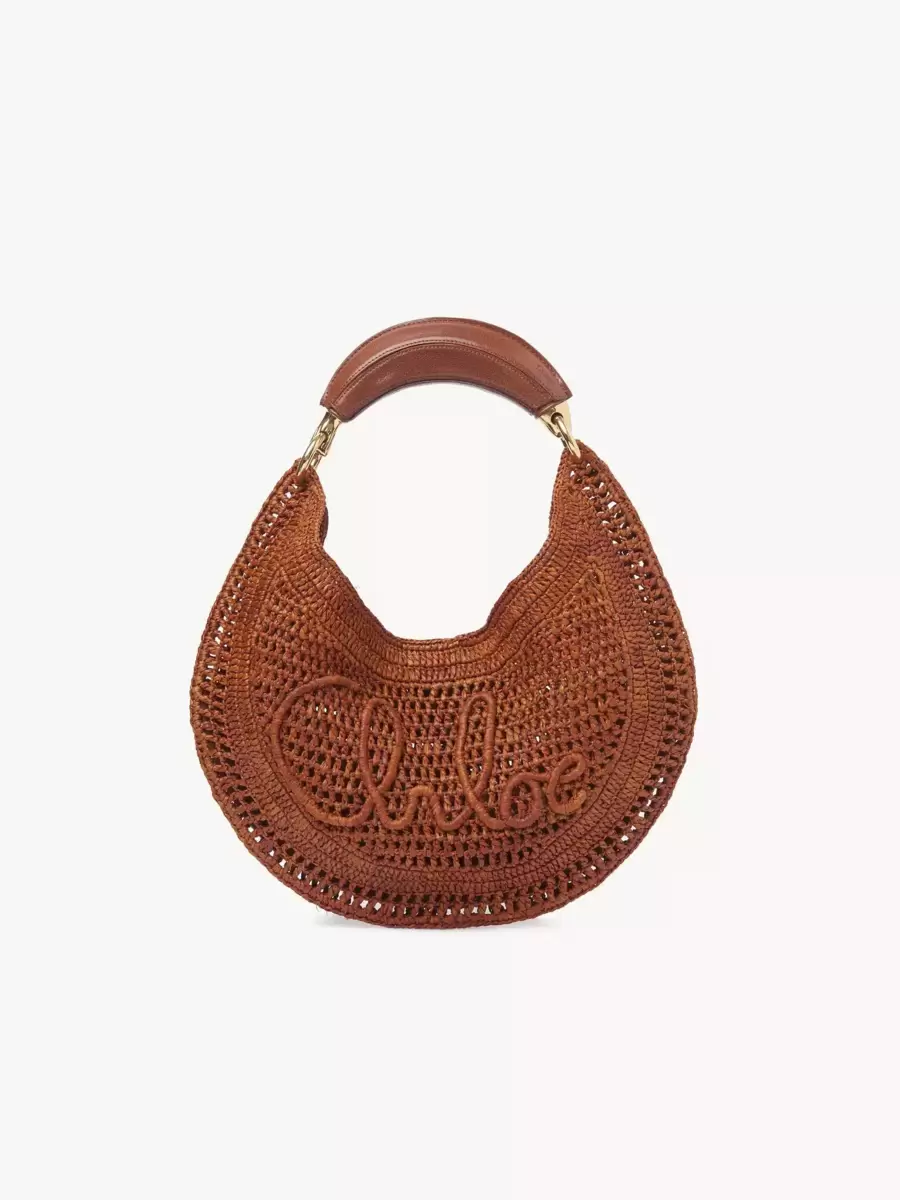 Summer Banana hobo çanta, Made For A Woman ile iş birliği içinde 4 gün boyunca tek bir zanaatkar tarafından rafia ve dana derisinden üretildi. Kavisli silüet, muz şeklindeki bir sapa ve Chloé mirasından ilham alan el yazısı bir imzaya sahip.
