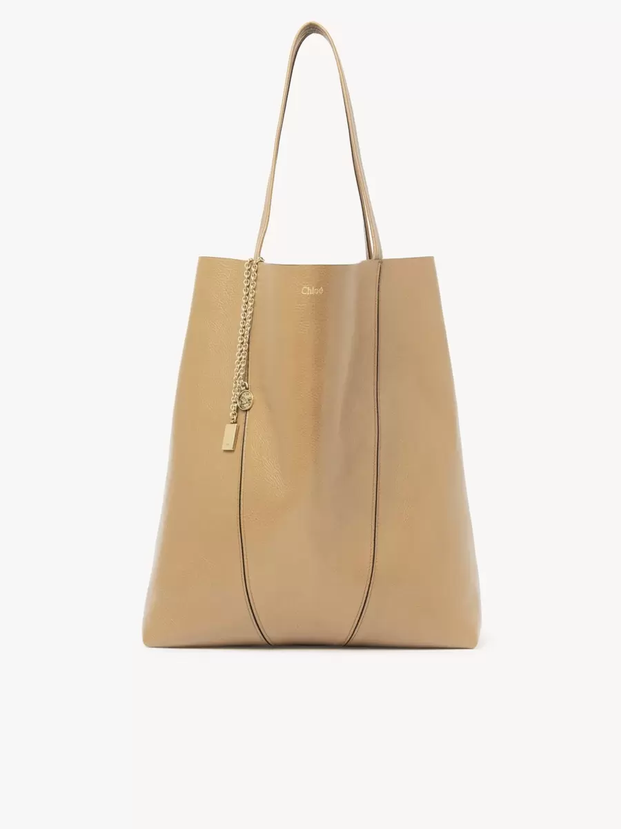 Parlak damarlı dana derisinden üretilen büyük Chloé Spin tote çanta, grafik çizgilerle zenginleştirilmiş minimalist bir silüete sahiptir. Sallanan zincirinde Maison’un imzası olan Chloé ve At Madalyaları bulunur.