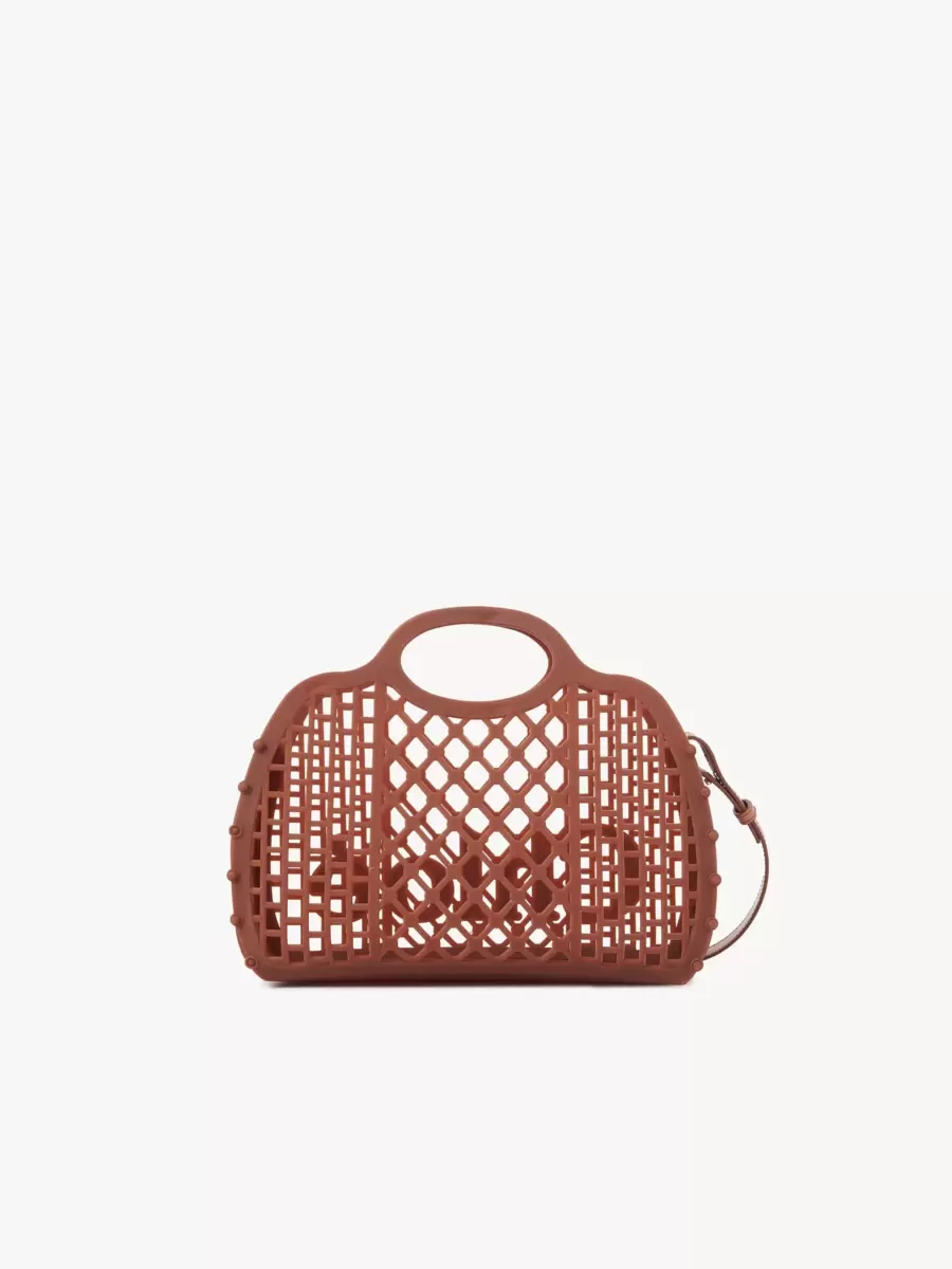 Bu Chloé Cage jöle tote çanta, karmaşık geometrik desenden yapılmış yuvarlak, kesik bir bölmeye sahiptir. Ön tarafta tonlu bir Chloé logosu bulunur.