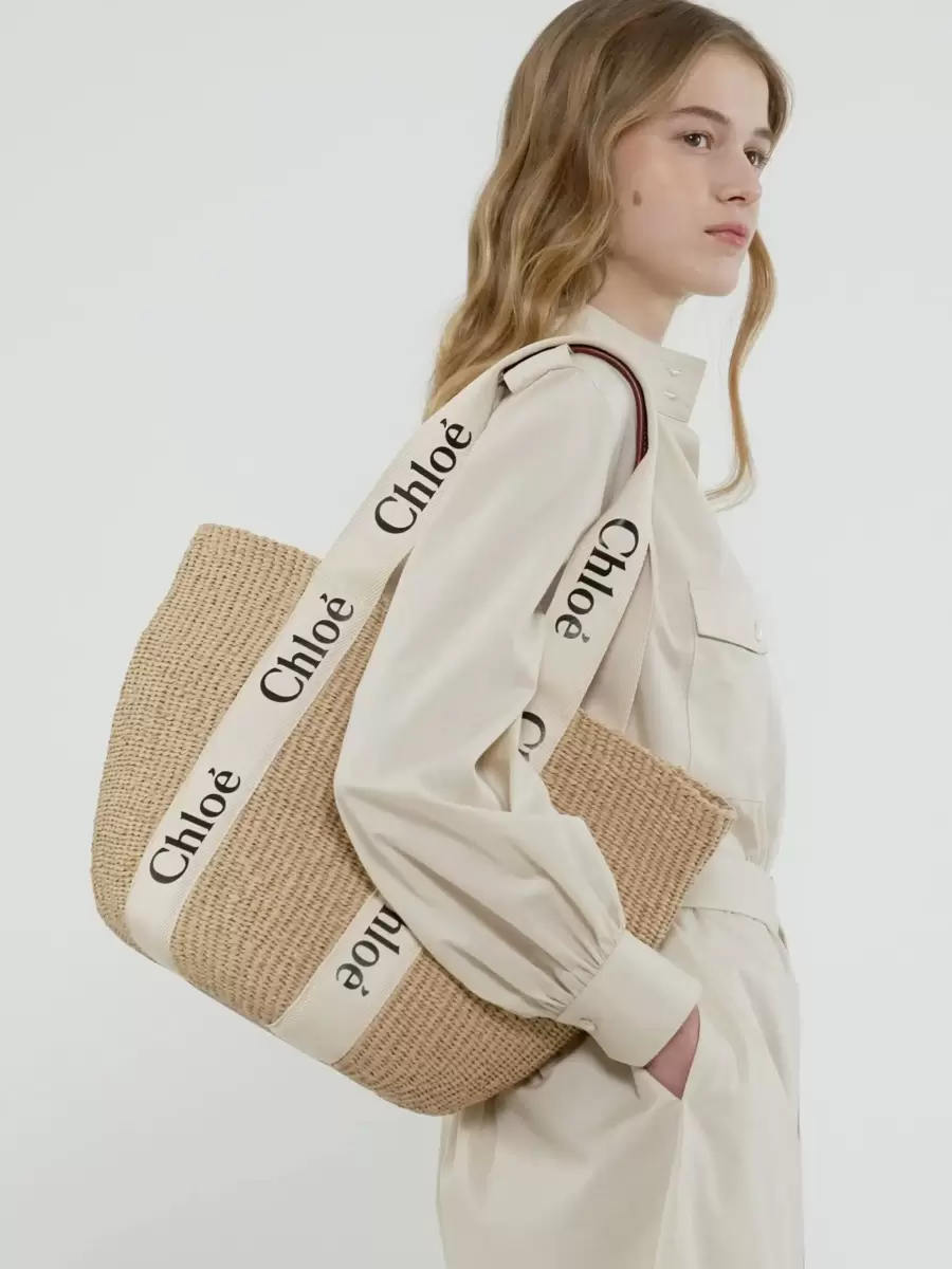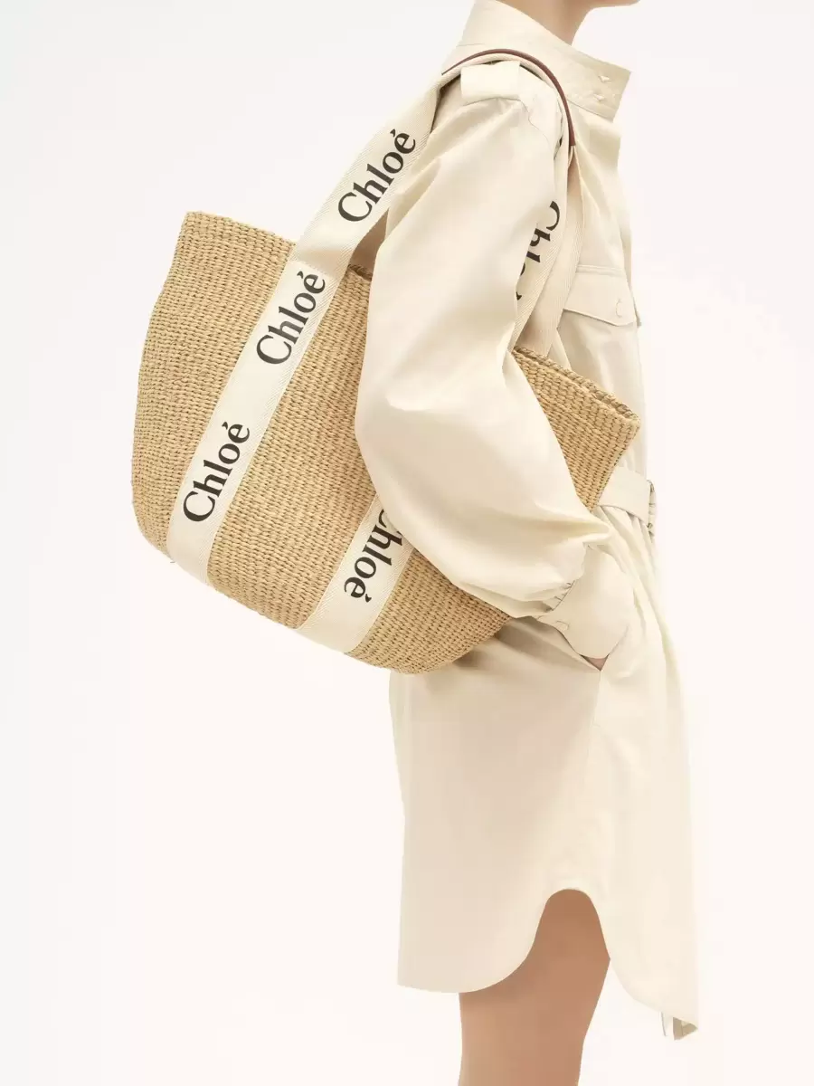 Zahmetsiz bir yaz havası için zamansız sepet şeklinde tasarlanan bu büyük Woody sepet, Kenya’daki bağımsız zanaatkarlar tarafından elle dokunmuştur. Maison’un Woody katırını yansıtan serinin Chloé logolu kurdelesi, grafik kontrast ve imza niteliğinde bir dokunuş için doğal elyaftan yapılmıştır. Sepetin tabanı, dayanıklılık için Chloé kabartmalı yuvarlak bir deri yama ile korunmaktadır.