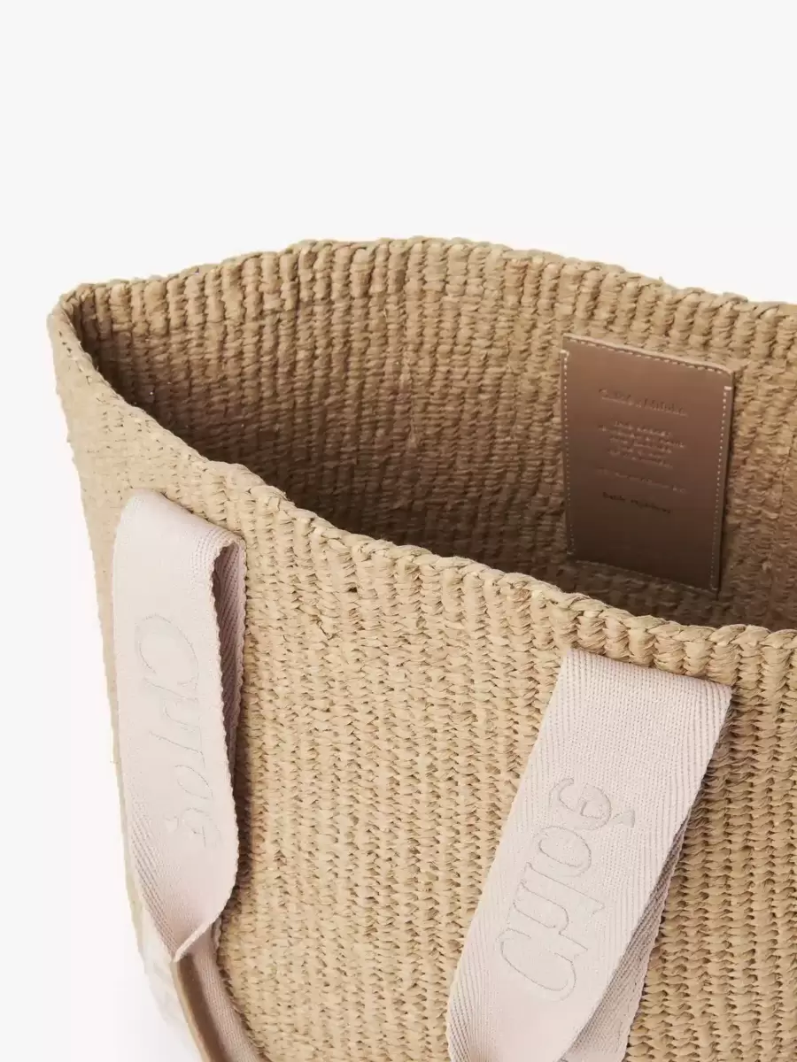 Zahmetsiz bir yaz havası için zamansız sepet şeklinde tasarlanan bu Woody büyük sepet, Kenya’daki bağımsız zanaatkarlar tarafından elle dokunmuştur. Parlak renkli işlemeli Chloé logosu dokuma, grafik kontrast ve imza niteliğinde bir dokunuş için doğal elyafı detaylandırır. Sepetin tabanı, dayanıklılık için Chloé kabartmalı yuvarlak bir deri yama ile korunmaktadır.