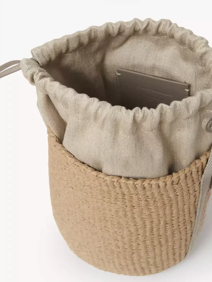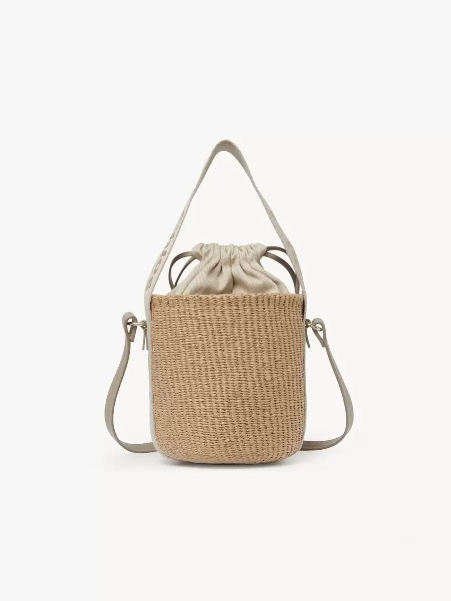 Adil ticaret kağıdı, dana derisi ve polyester dokumadan yapılmış, Chloé logo işlemeli küçük Woody sepet çanta