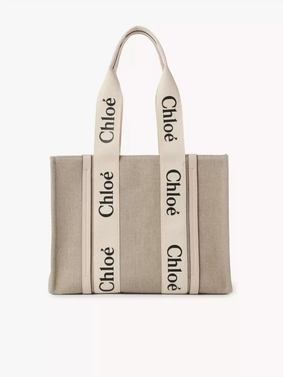 Chloé logolu keten kanvas ve parlak dana derisinden yapılmış tote çanta