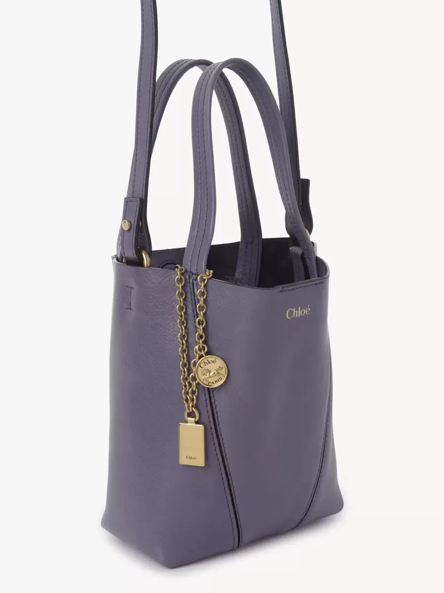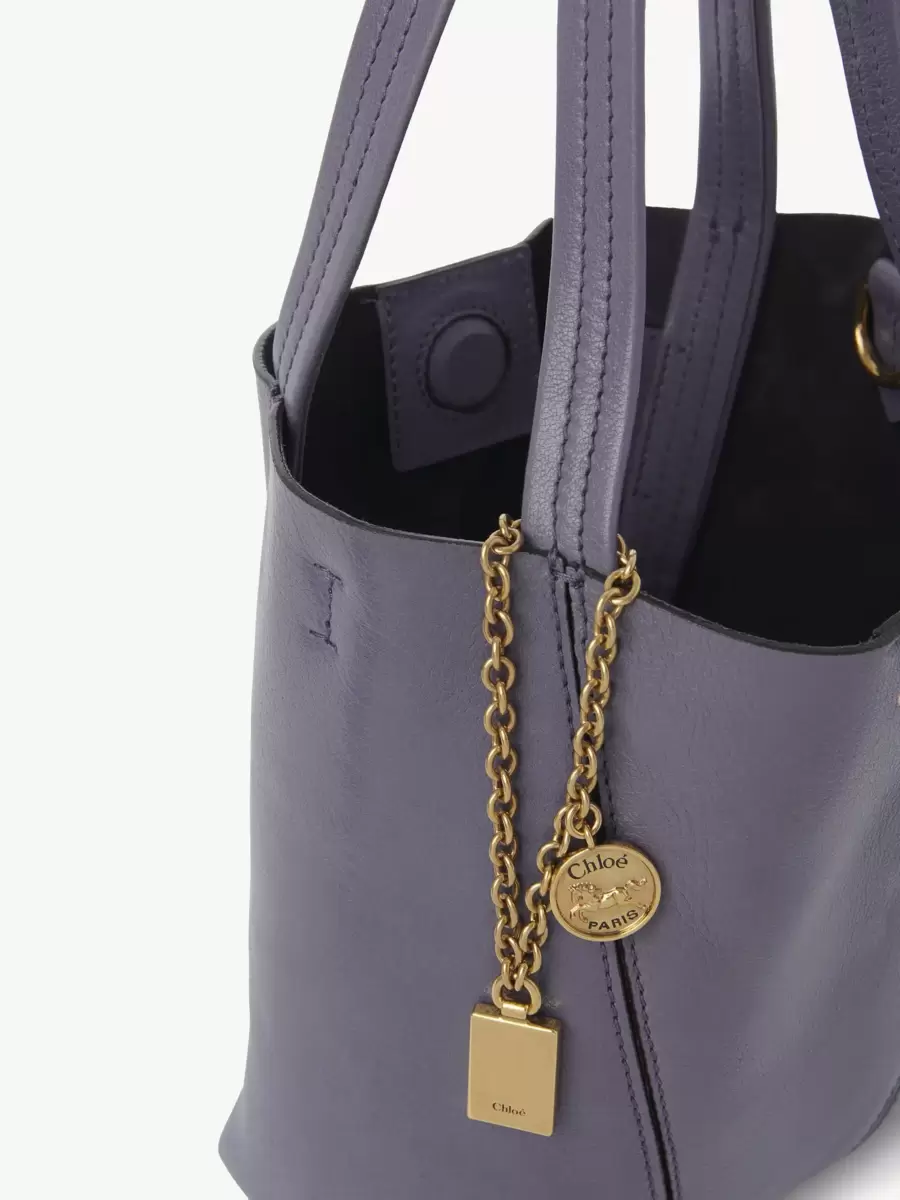 Parlak damarlı dana derisinden küçük Chloé Spin tote çanta