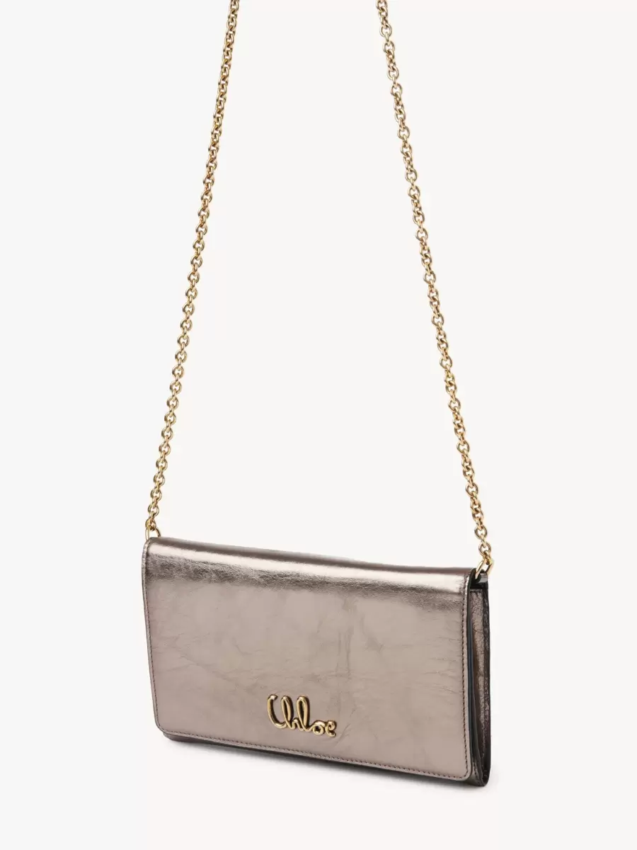 Chloé Iconic metalize deri zincirli kapaklı cüzdan