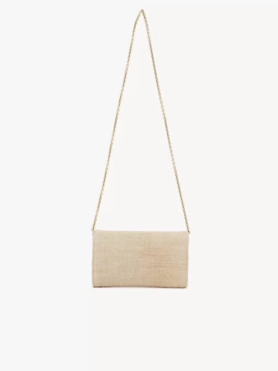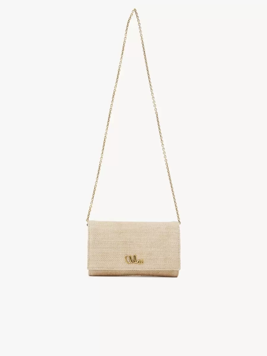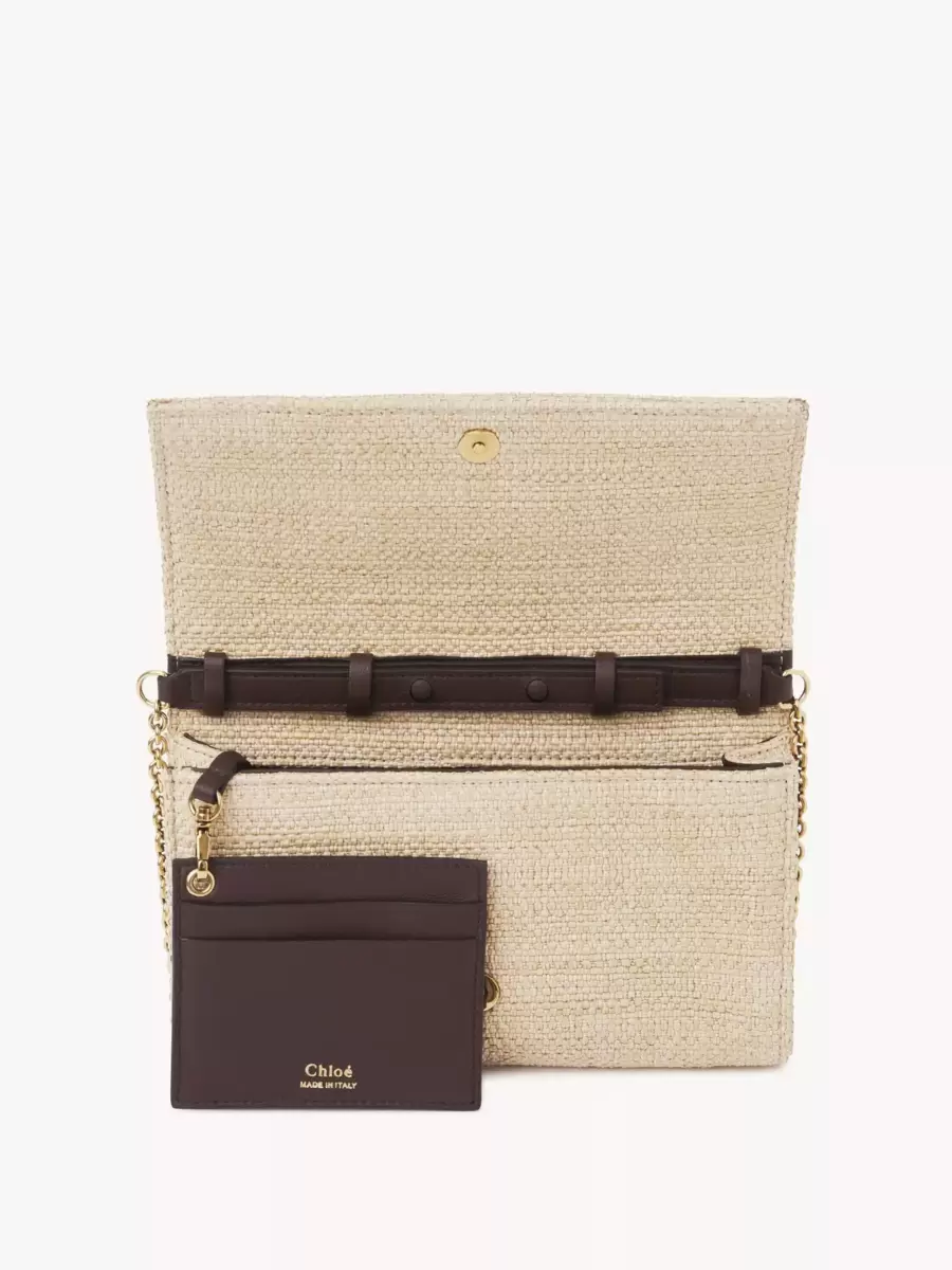 Rafia efektli elyaftan yapılmış zincirli Chloé Iconic kapaklı cüzdan