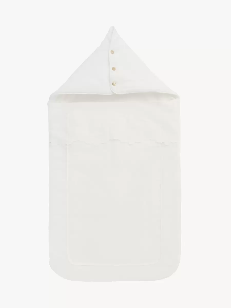 Sevimli ve pratik bir yenidoğan hediyesi olan bu bebek uyku tulumu, organik pamuklu interlok astarlı organik pamuklu dimi kumaştan üretilmiştir. Sade ve yumuşak iç kısmı, çiçek işlemeleri ve pamuklu perkal kapak boyunca uzanan Chloé logosuyla zenginleştirilmiştir. Altın tonlu, Chloé işlemeli çıtçıtlar kapüşonu tamamlar.