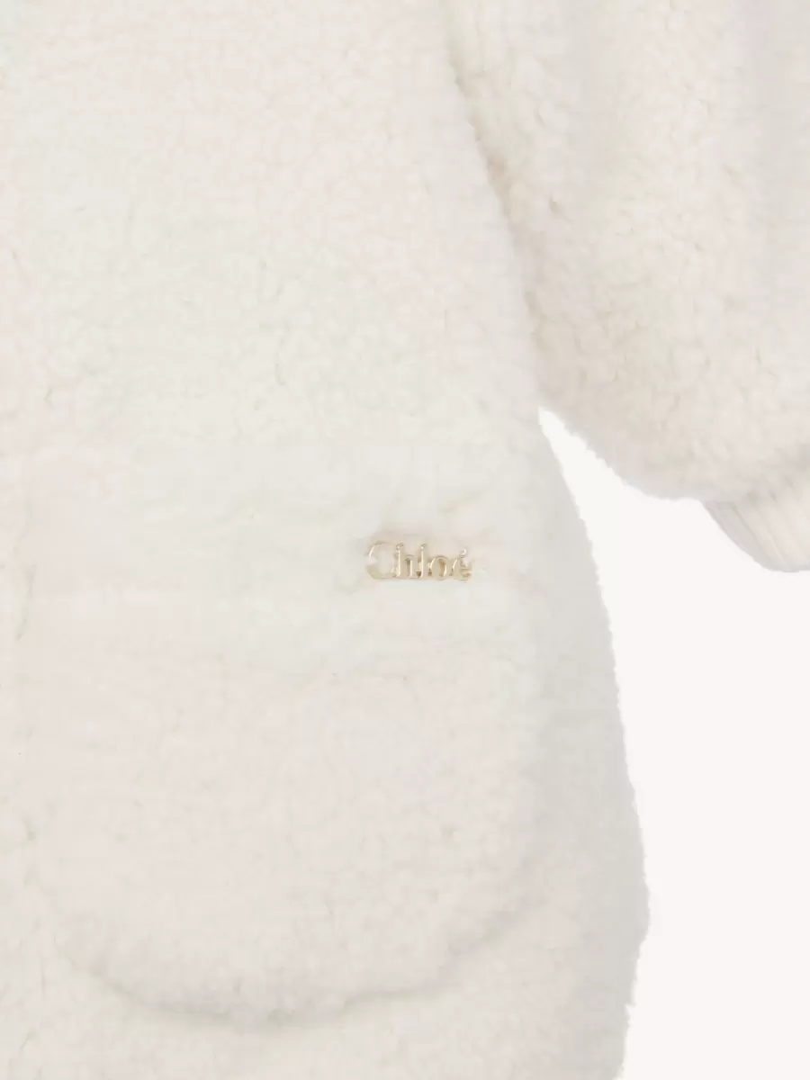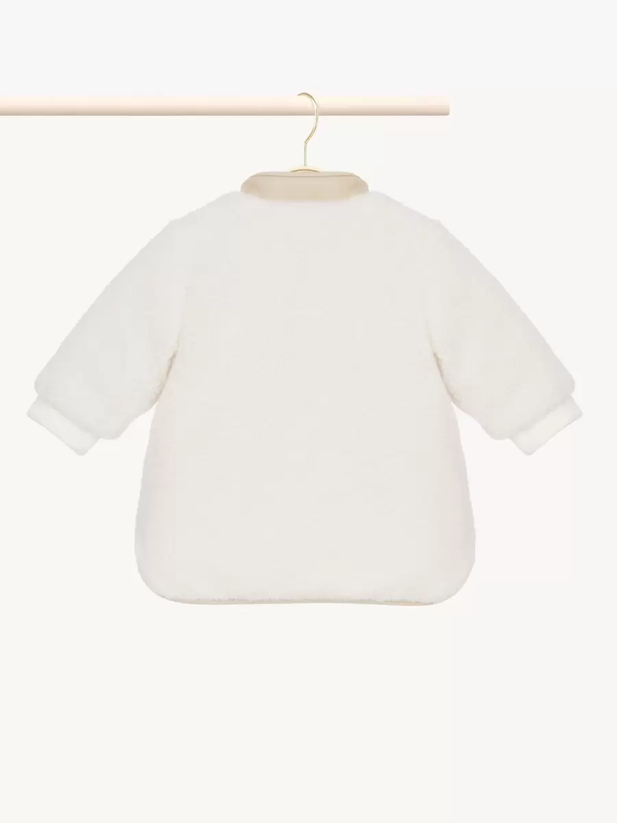 Koyun postundan üretilen bu sıcak mont, suni deri yaka ve altın tonlarında Chloé işlemeli çıtçıt düğmelere sahiptir. İki yama cep, nervürlü süslemeler ve altın tonlarında Chloé logo plakası bu parçayı tamamlar.