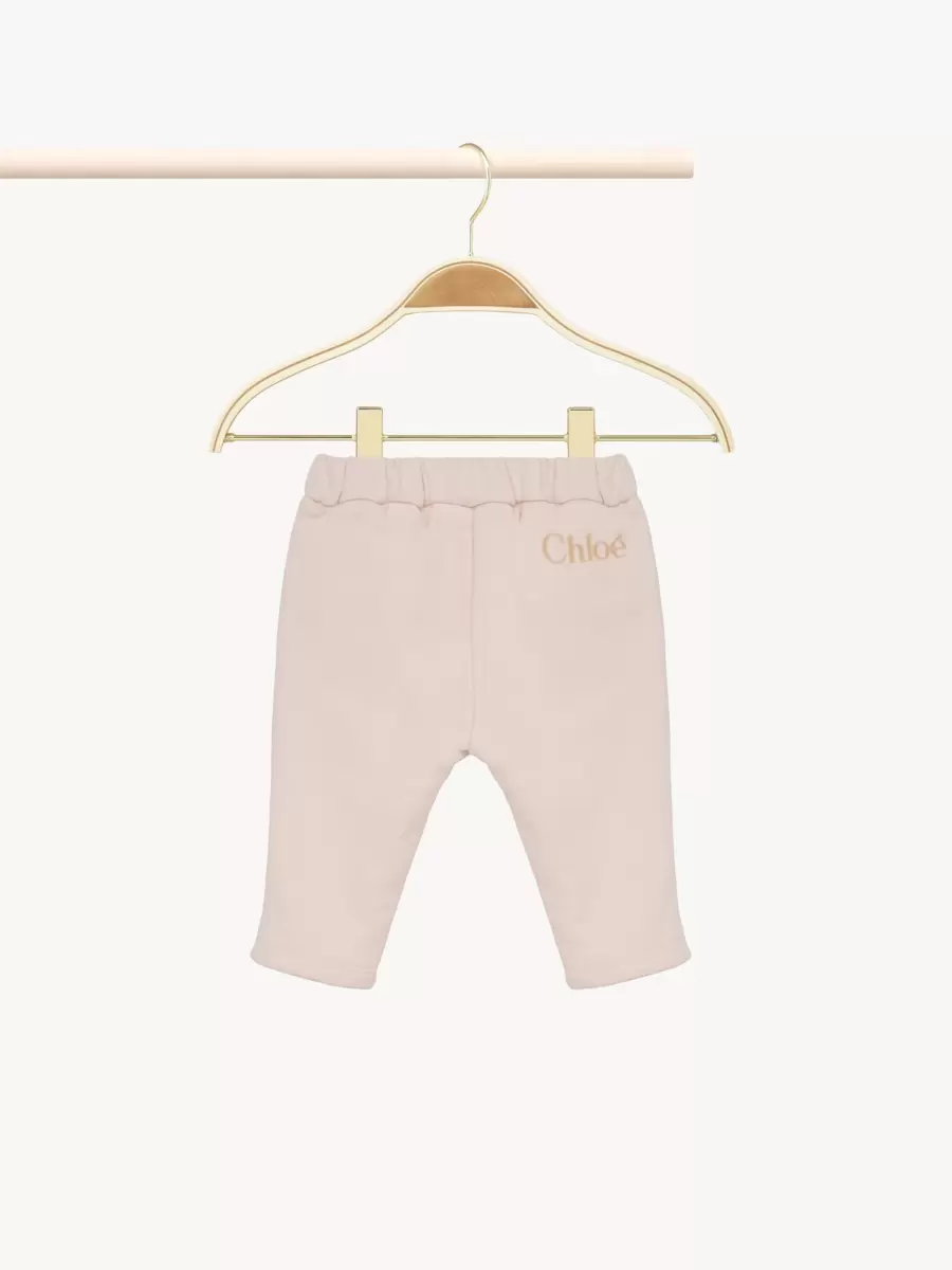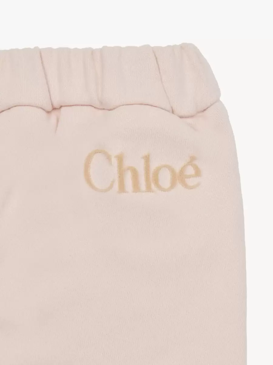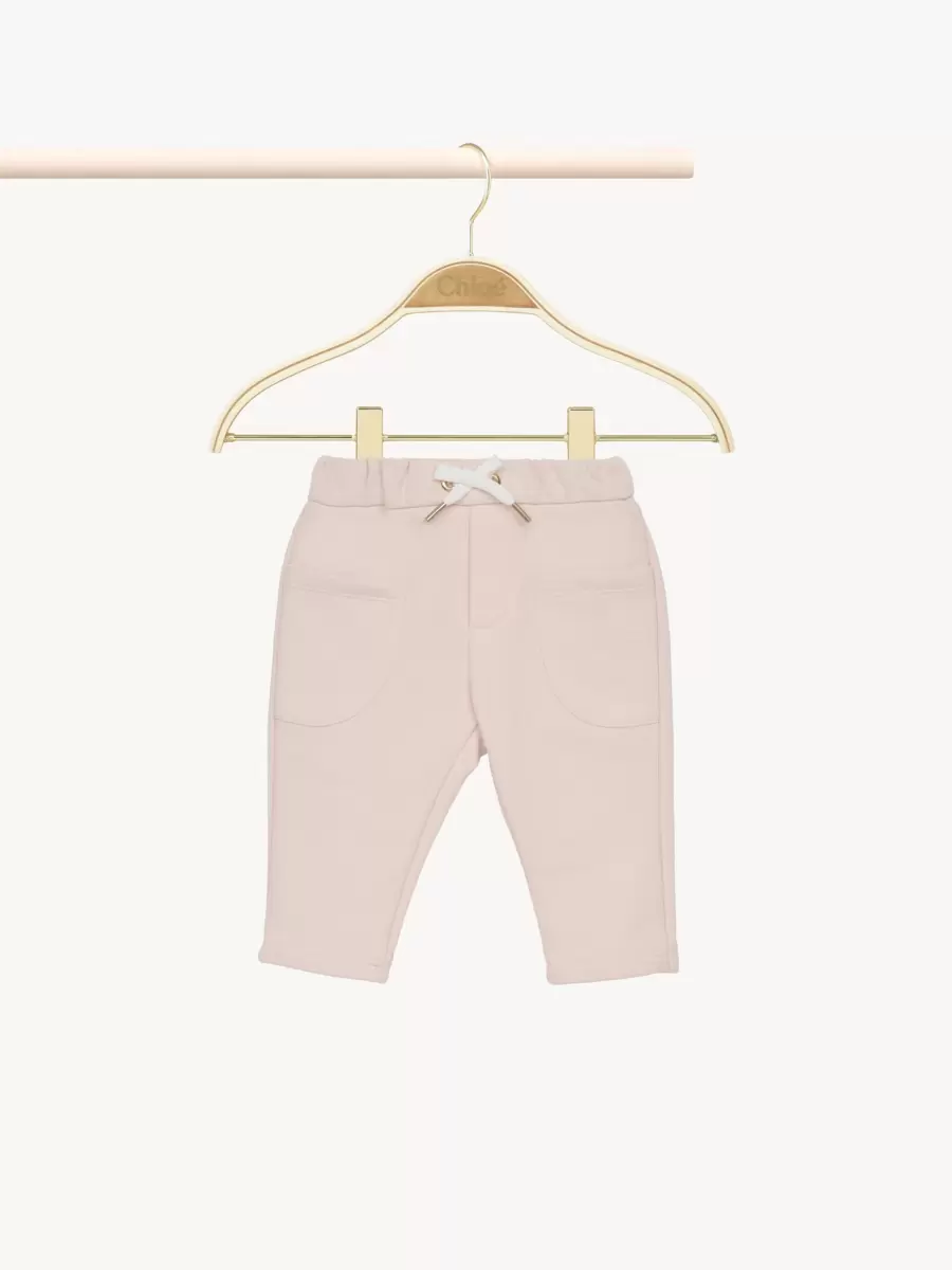 Organik pamuklu polar kumaştan üretilen bu bağcıklı pantolon, markalı altın tonlu aksesuarlarla yükseltilmiş lastikli bir bele sahiptir. Ön tarafta iki yama cebi bulunurken, arkada kadife efektli Chloé logo işlemesi yer alır.